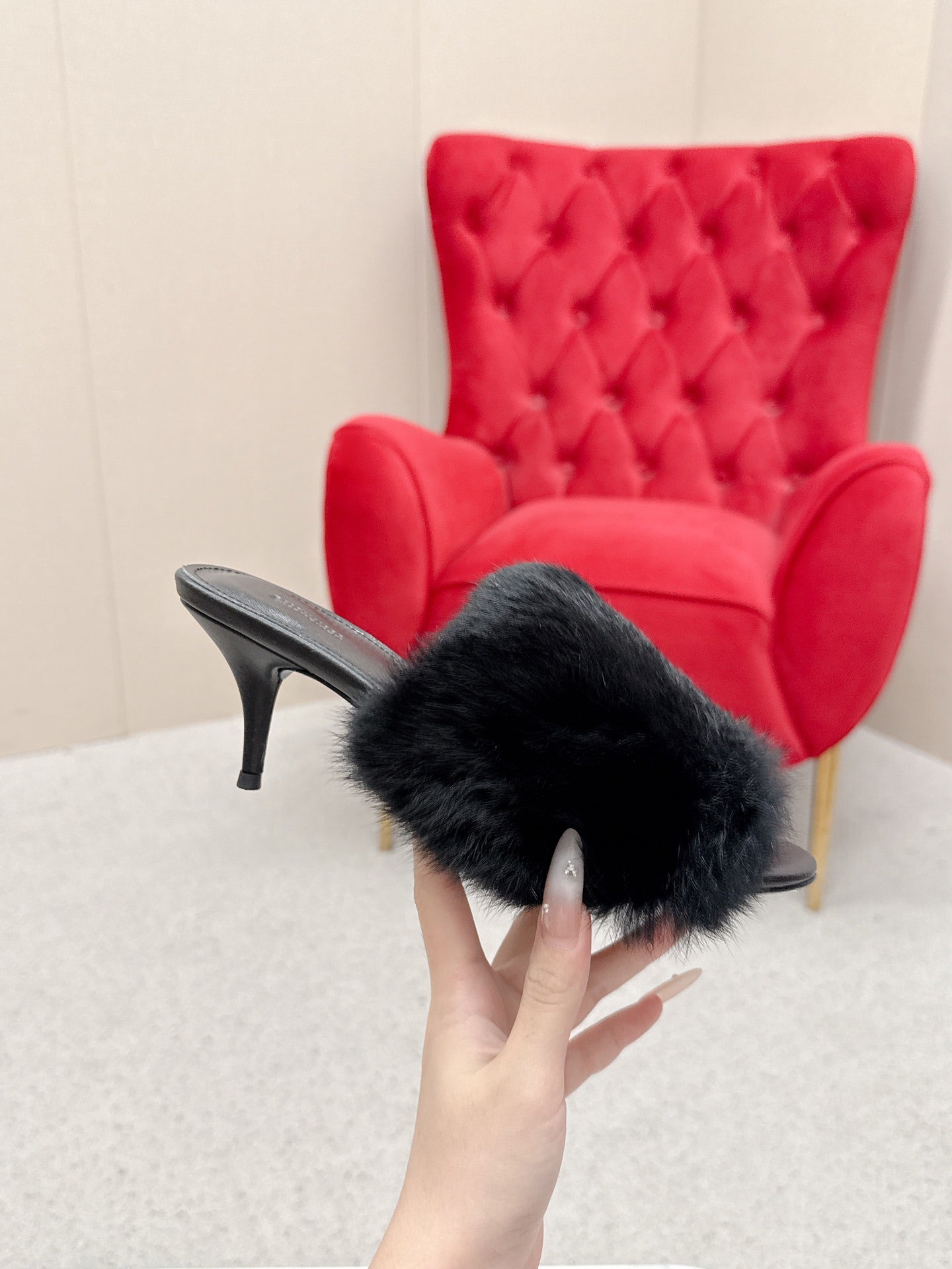 BALENCIAGA 25S HIGH HEEL SANDALS 65 MM IN BLACK LAMBSKIN AND FUR