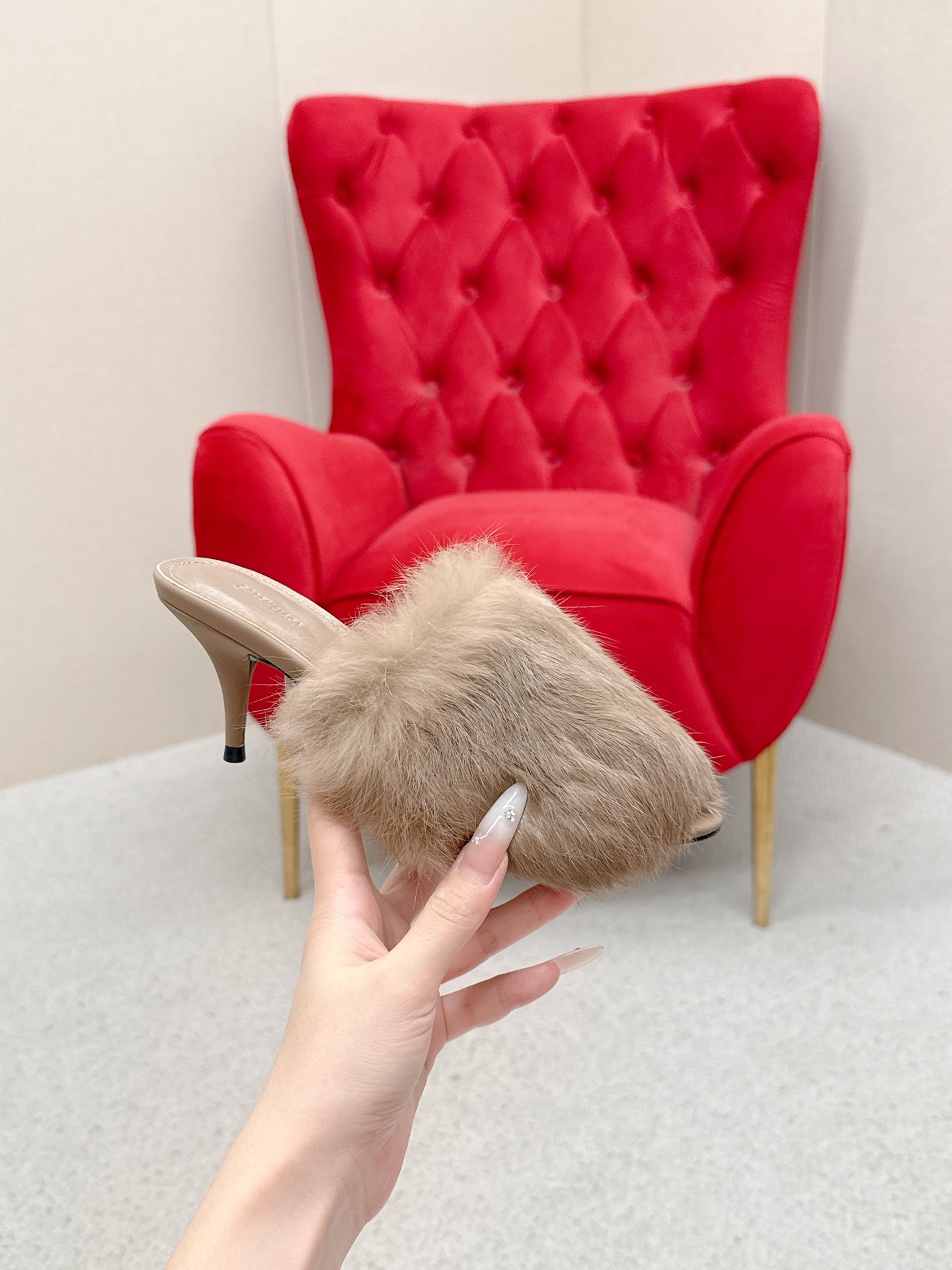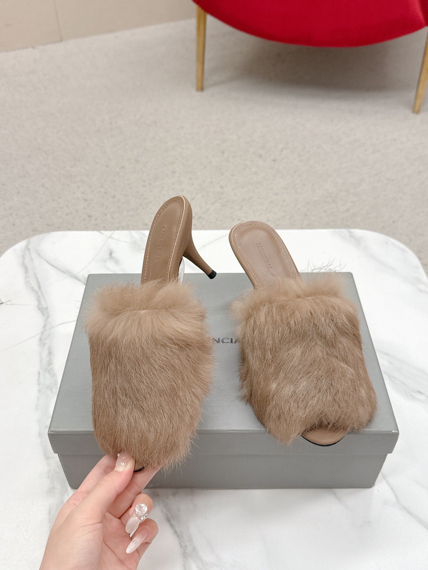 BALENCIAGA 25S HIGH HEEL SANDALS 65 MM IN LIGHT BROWN LAMBSKIN AND FUR