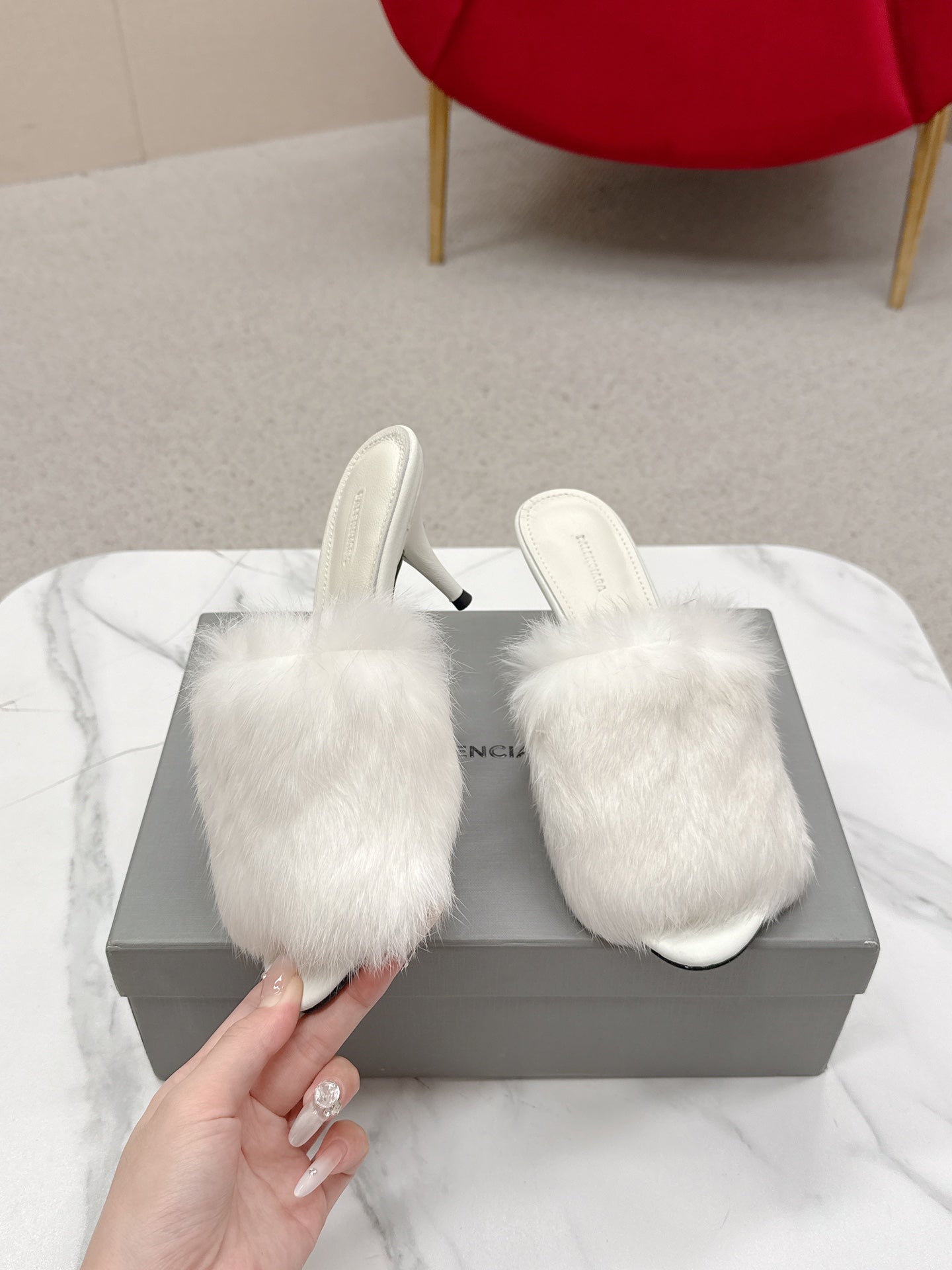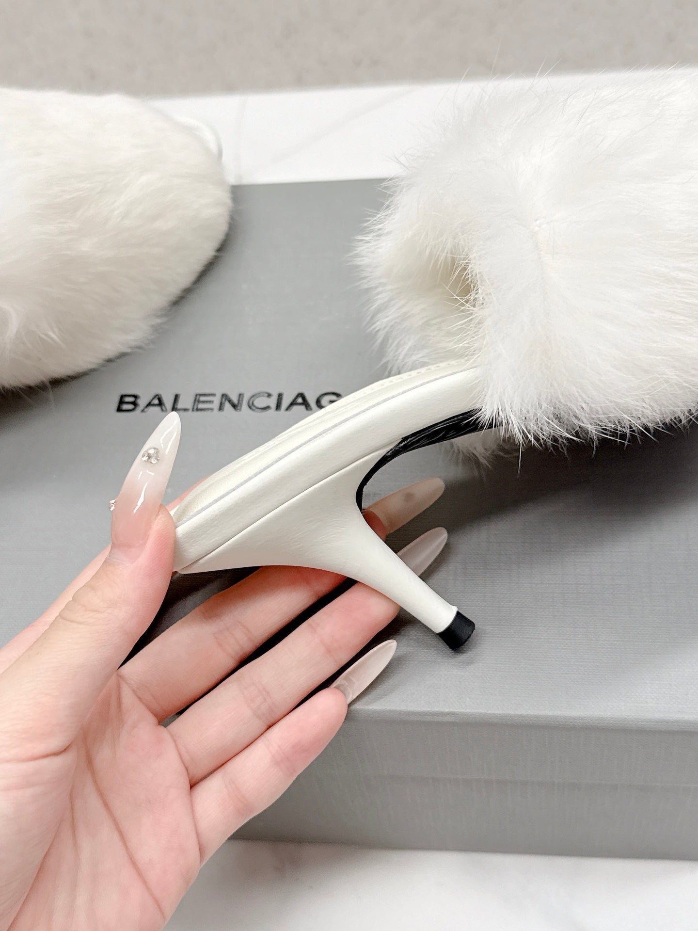 BALENCIAGA 25S HIGH HEEL SANDALS 65 MM IN WHITE LAMBSKIN AND FUR