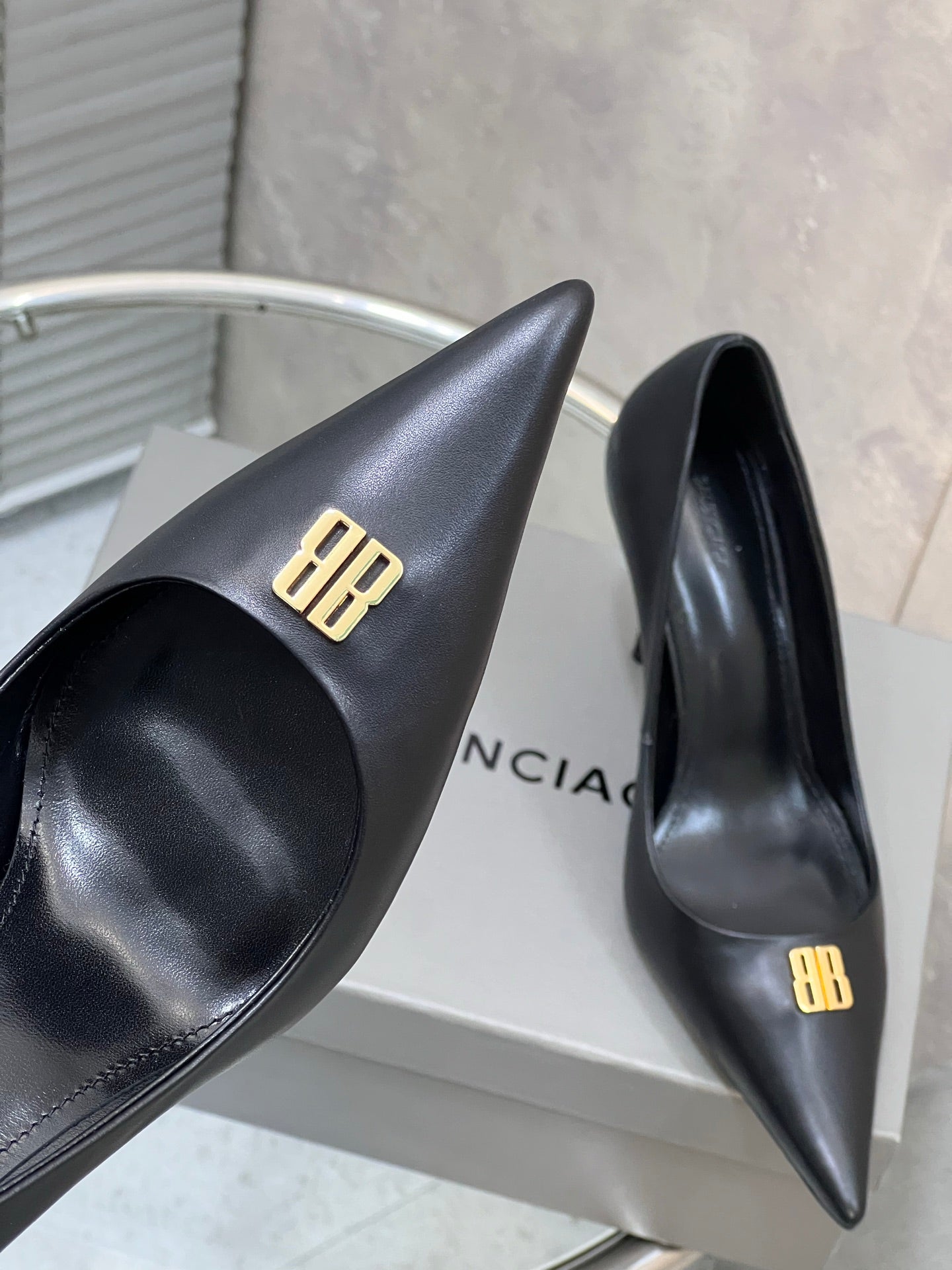 BALENCIAGA 25S HIGH-HEEL SHOES 85 MM IN BLACK COW LEATHER WITH GOLD HARDWARE