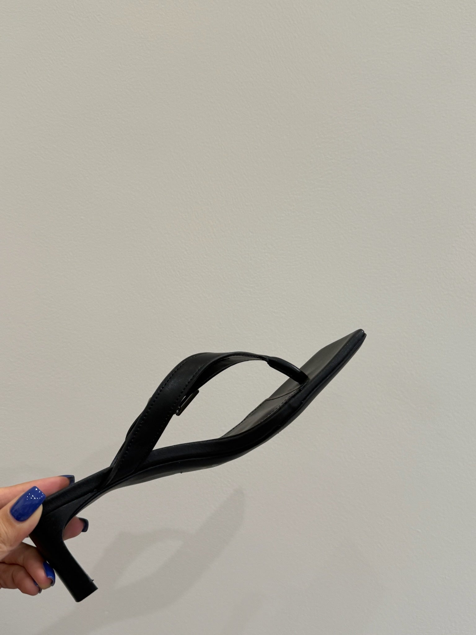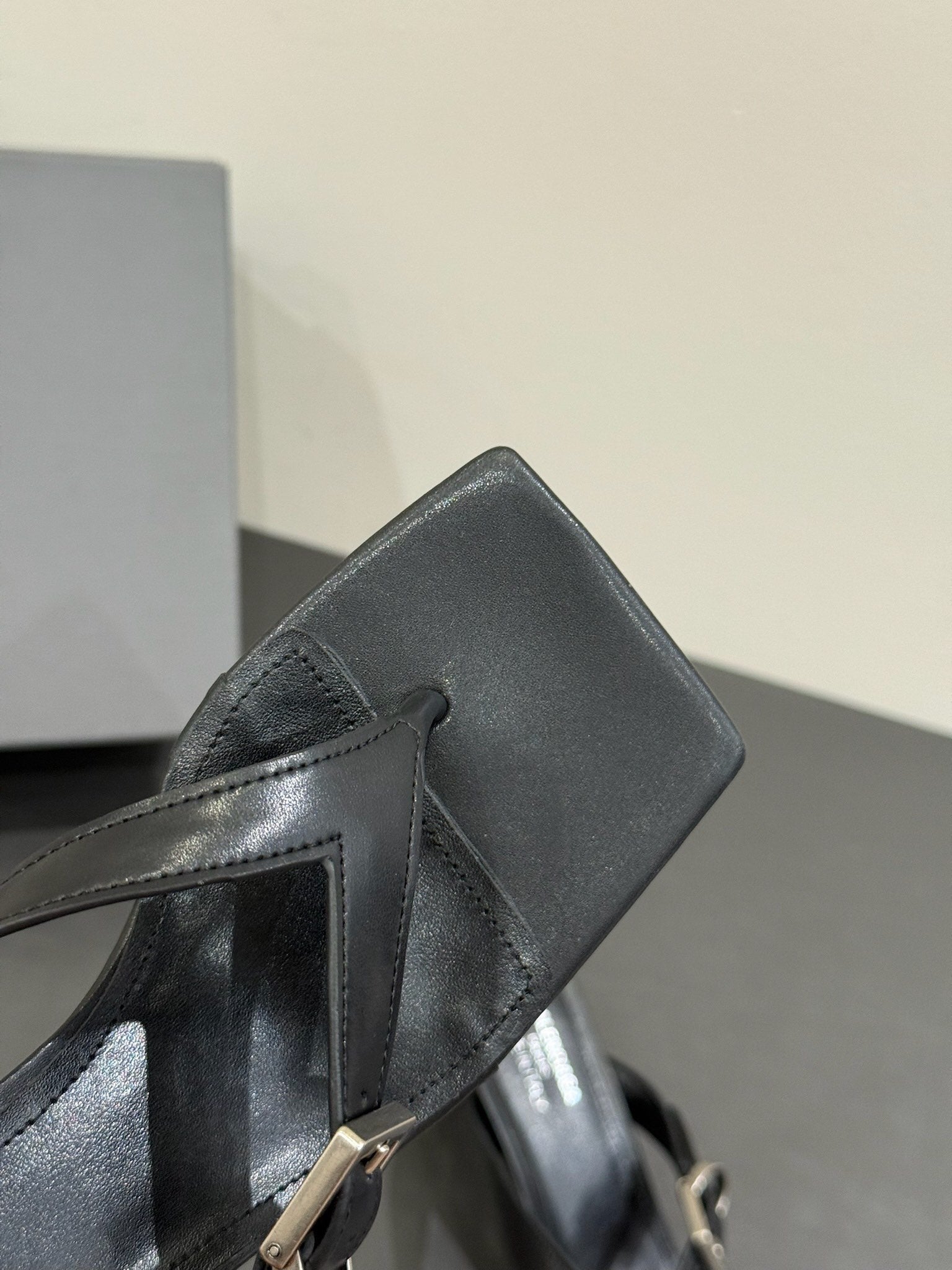 BALENCIAGA 25S HIGH-HEELED FLIP-FLOPS IN BLACK CALFSKIN WITH SILVER HARDWARE