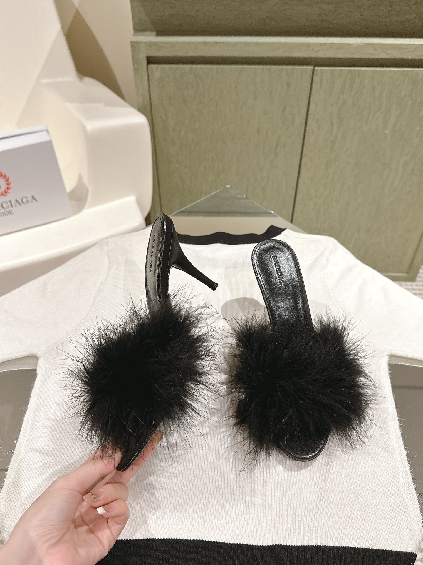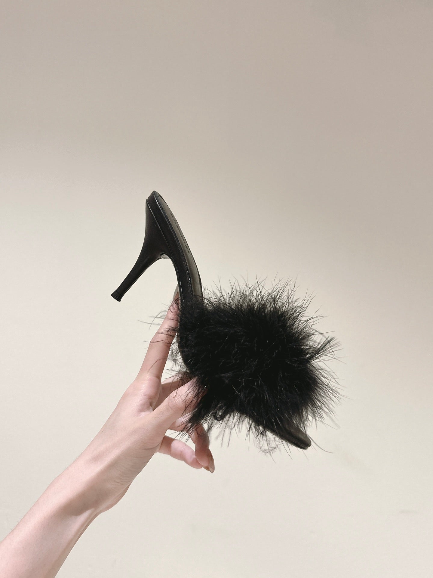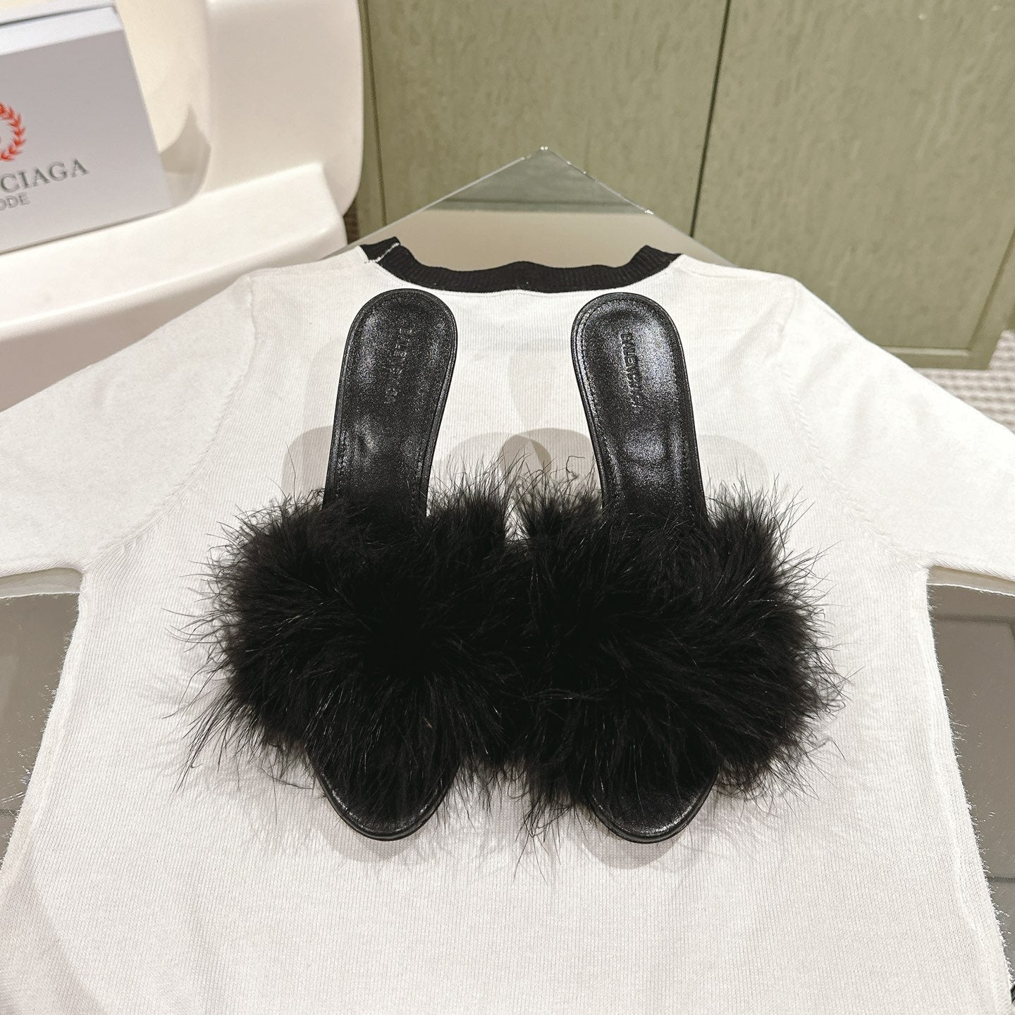 BALENCIAGA 25S HIGH-HEELED SANDALS 85 MM IN BLACK FAUX FUR AND PU
