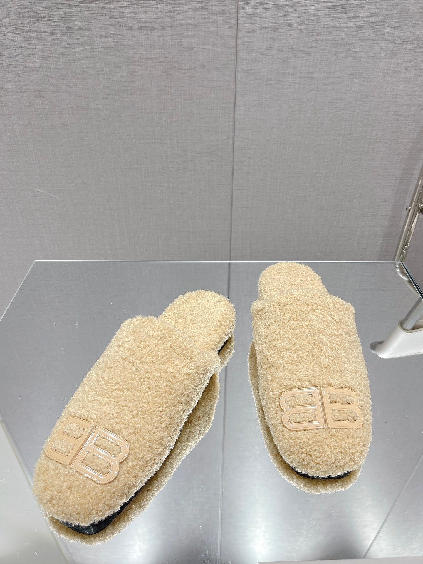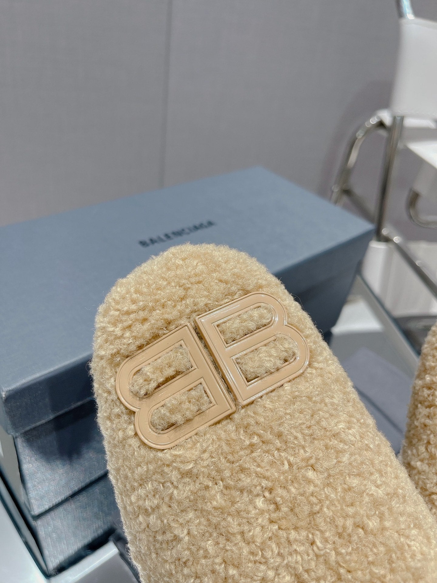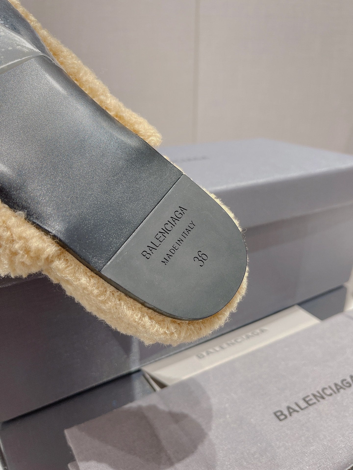 BALENCIAGA 25S MULES IN BEIGE WOOL WITH LOGO