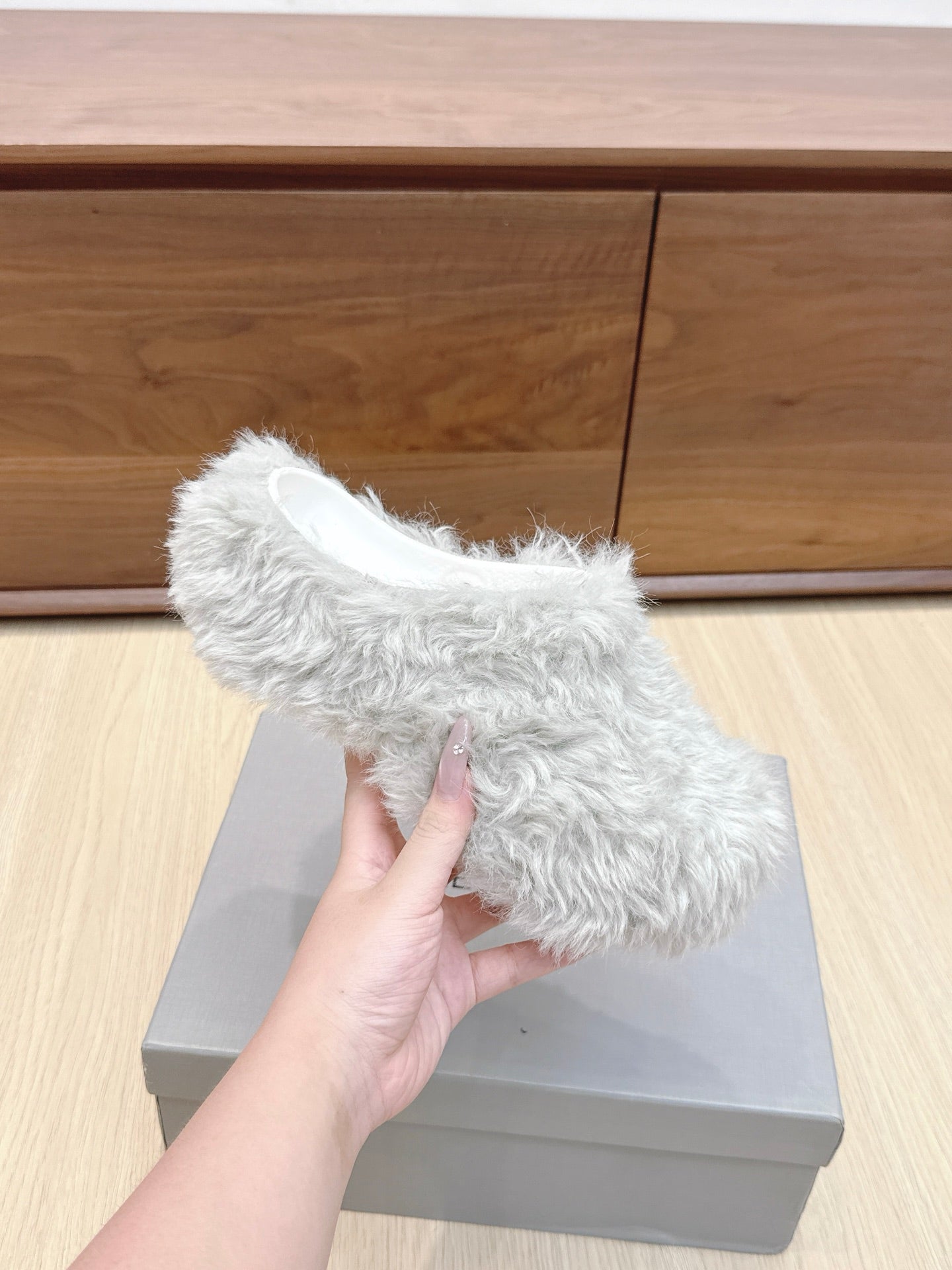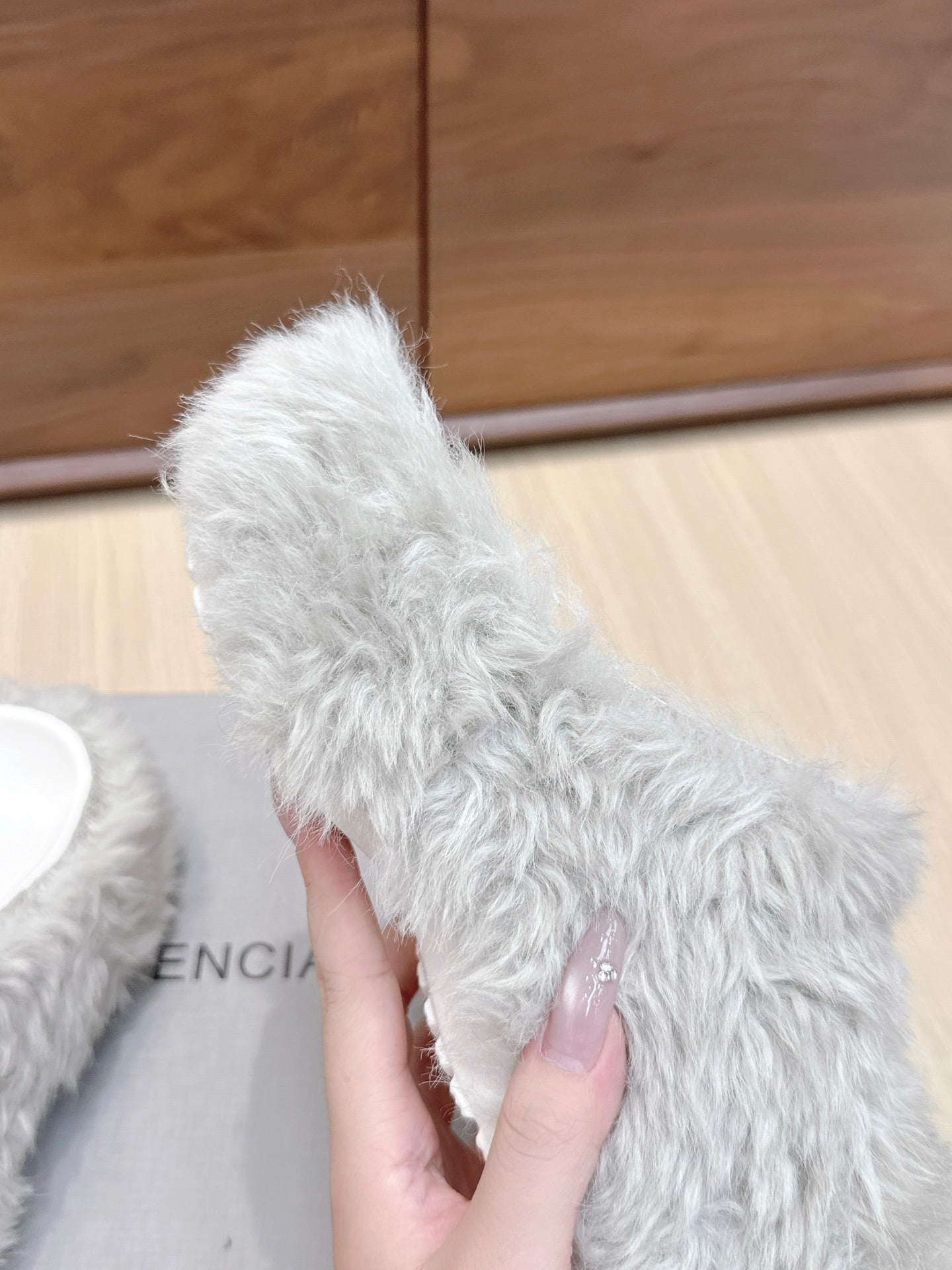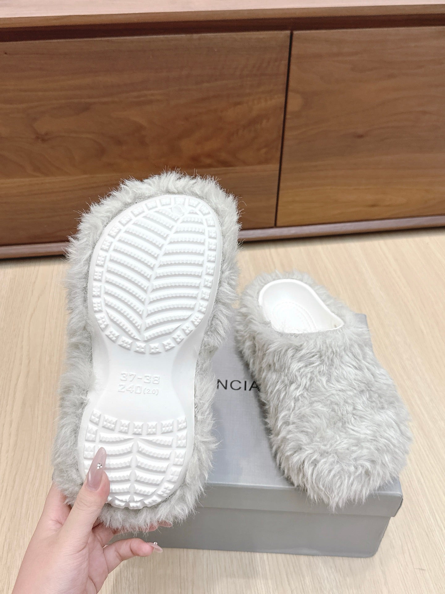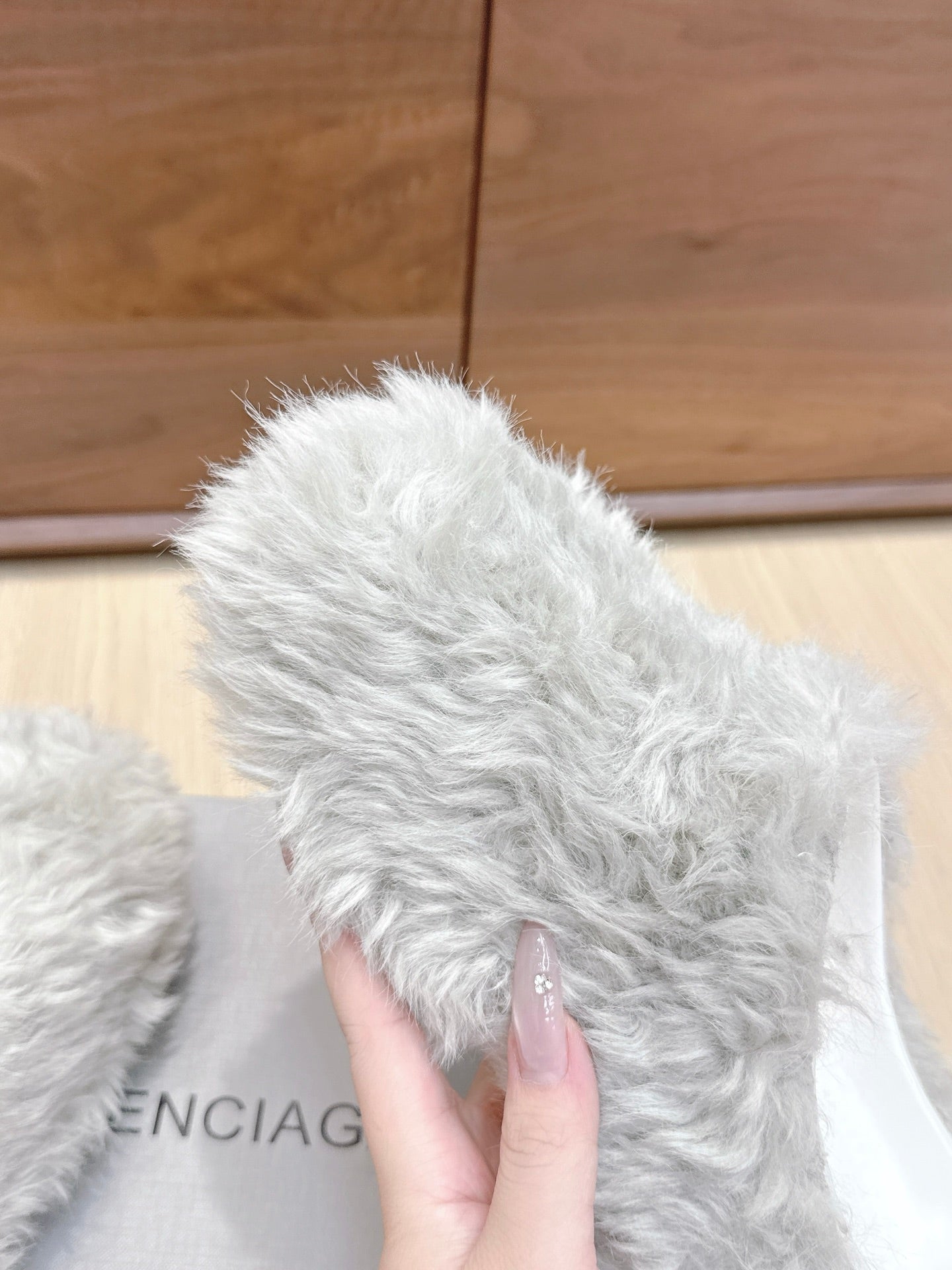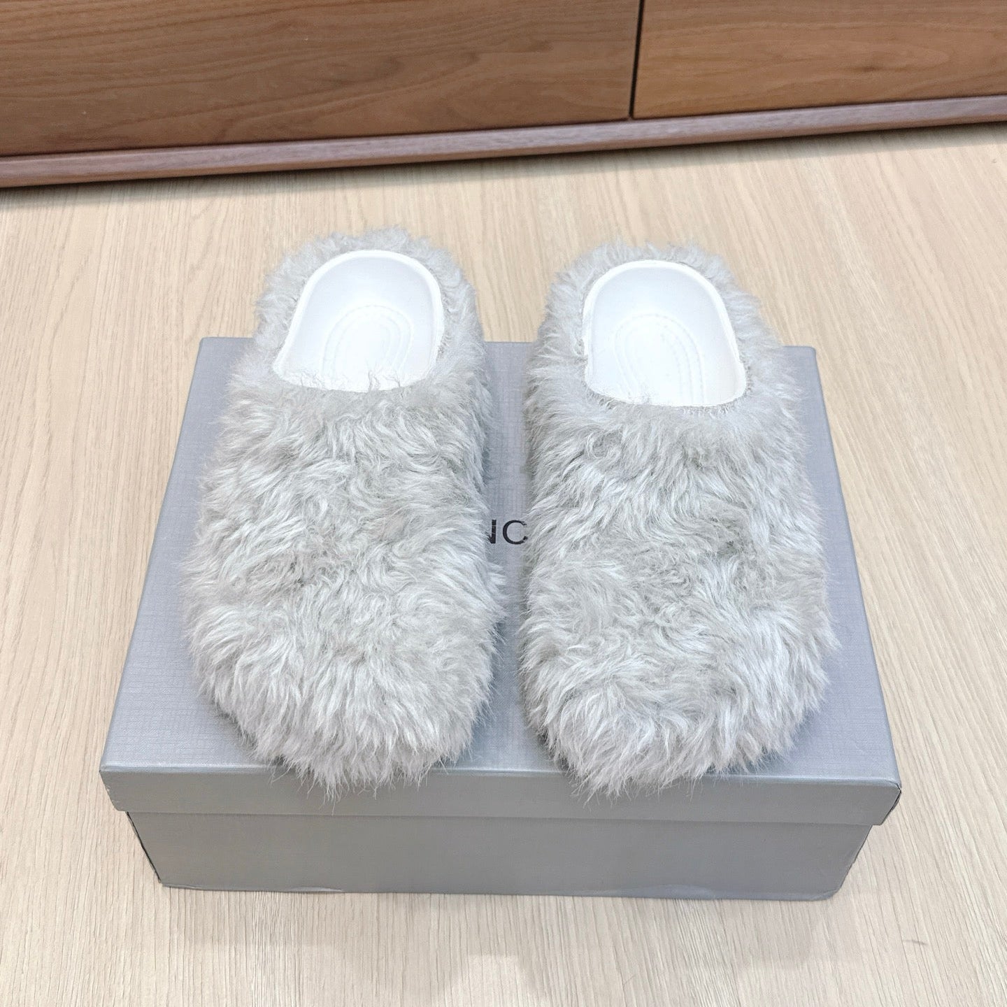 BALENCIAGA 25S MULES IN IVORY WHITE FAUX FUR