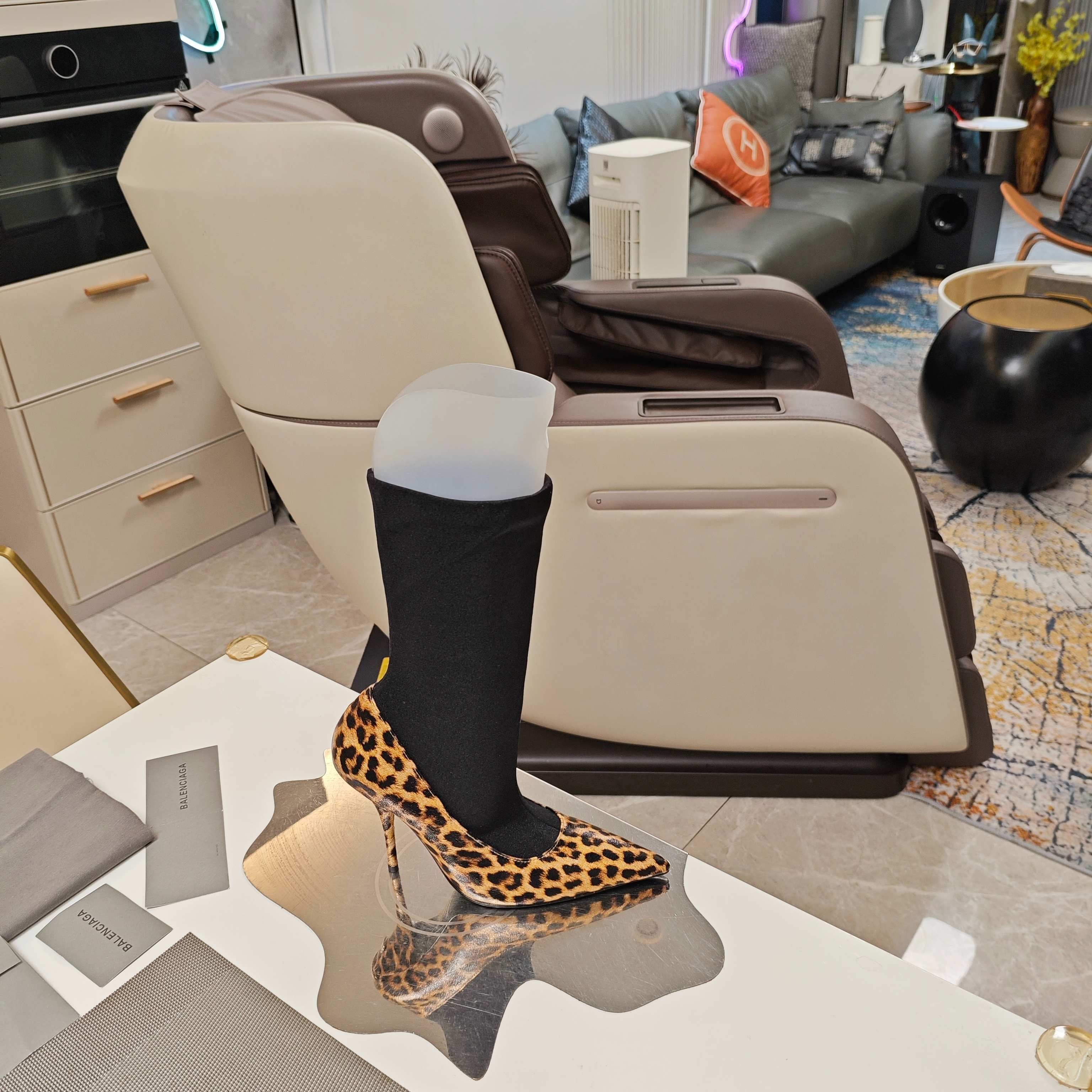 BALENCIAGA 25S POINTED-TOE HIGH HEELS 90 MM IN BLACK FABRIC AND LEOPARD PRINT CALFSKIN STYLE 2