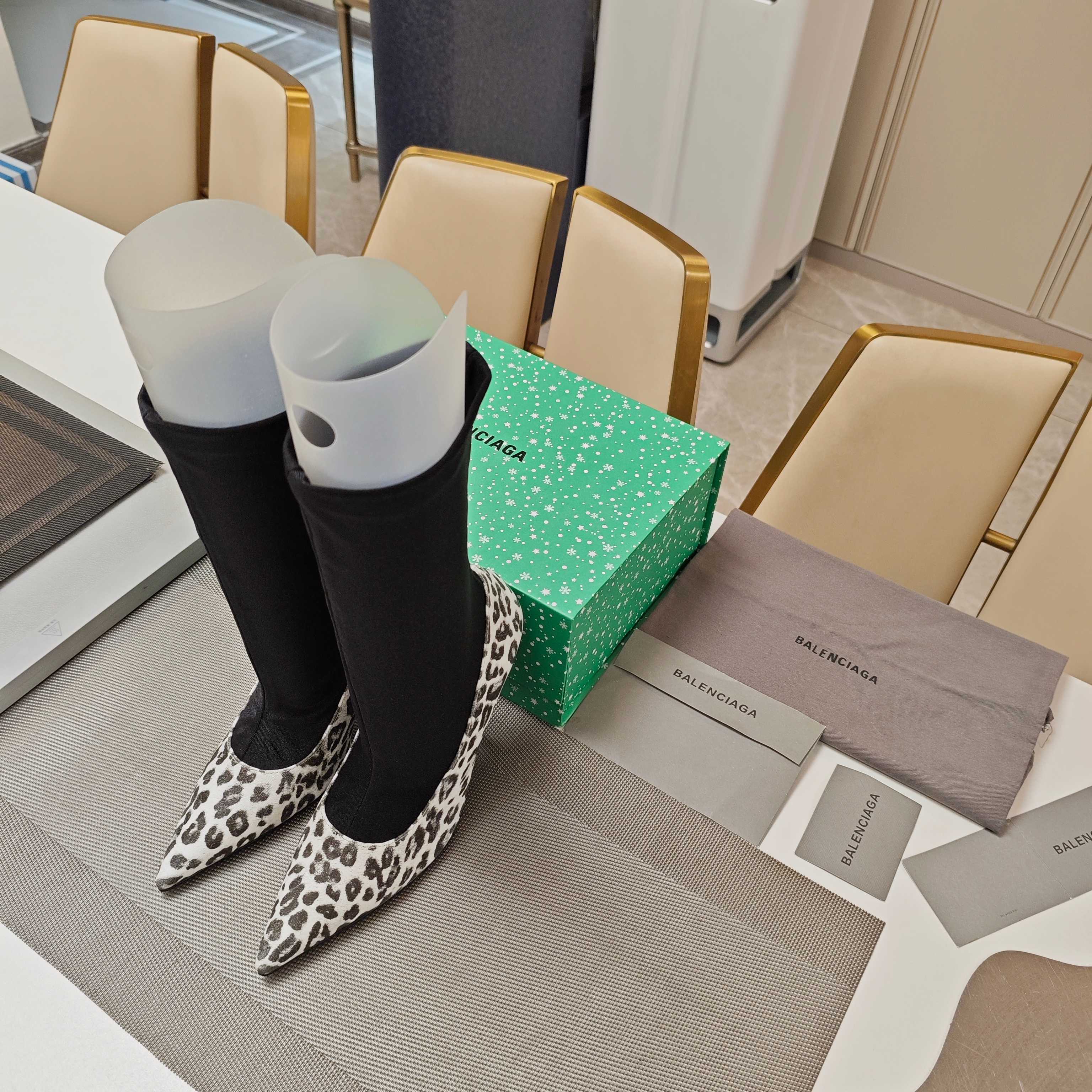 BALENCIAGA 25S POINTED-TOE HIGH HEELS 90 MM IN BLACK FABRIC AND LEOPARD PRINT CALFSKIN STYLE 3