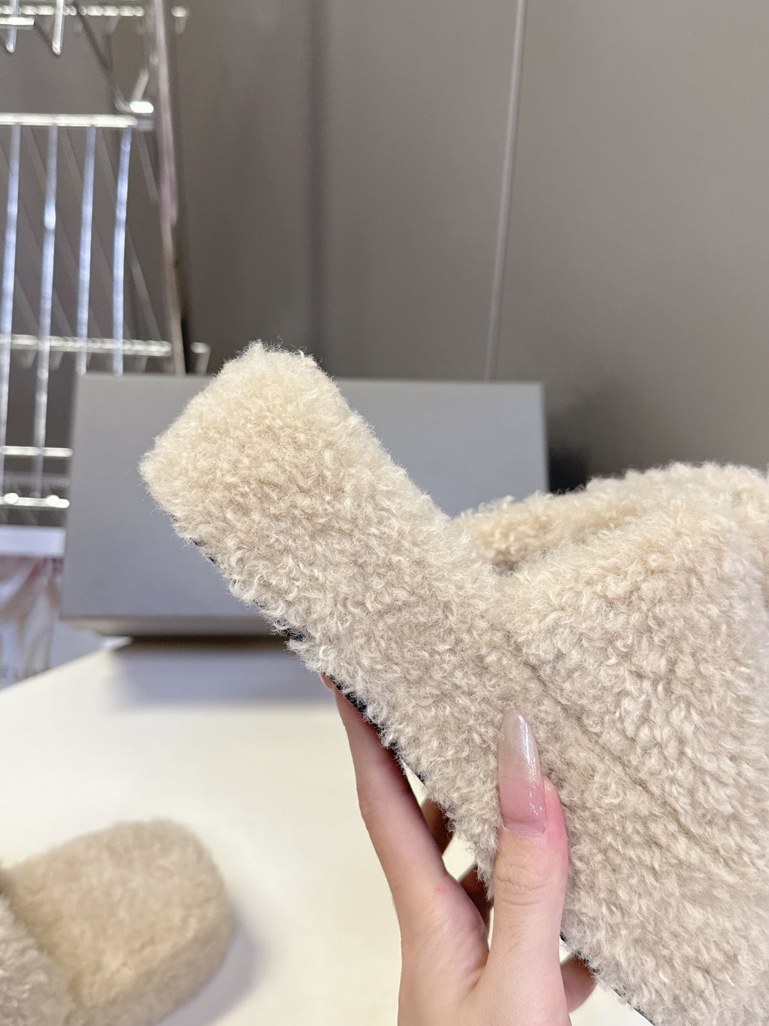 BALENCIAGA 25S SLIPPERS IN BEIGE FAUX SHEARLING