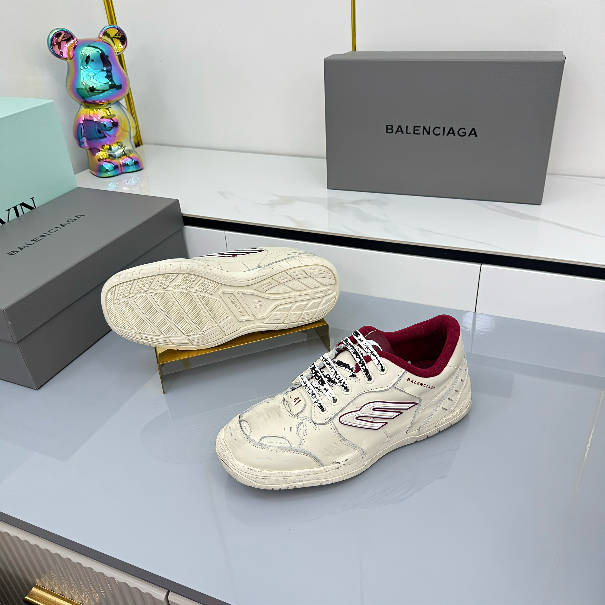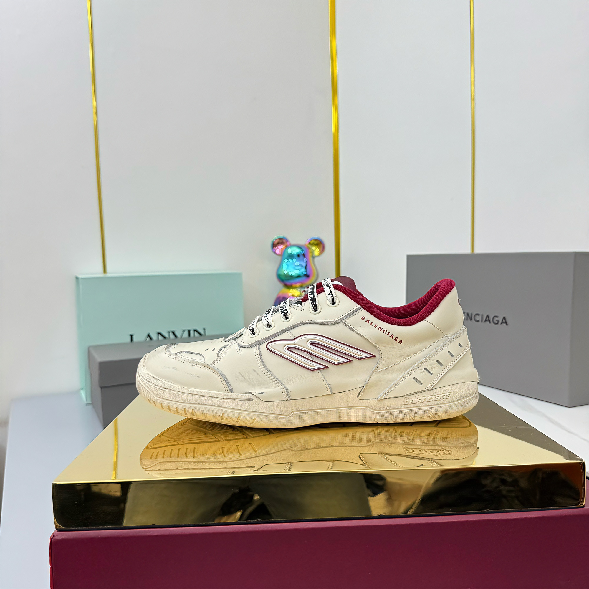BALENCIAGA 25S SNEAKERS IN CREAM WHITE MIX RED LEATHER