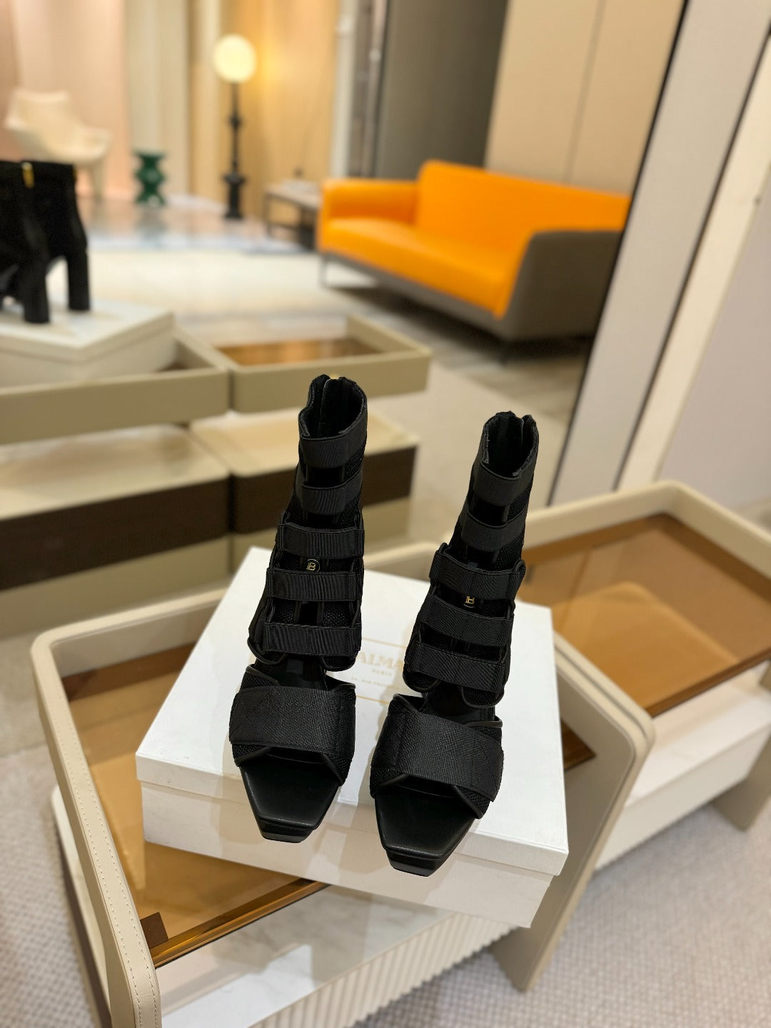 BALMAIN 25S UMA SANDALS 105MM IN BLACK VELCRO AND MESH