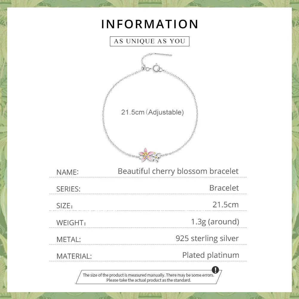 ❤ [Description] The bracelet with two cherry blossoms uses exquisite oxidation silver and enamel craftsmanship, fashionable and lovely. Pink cherry blossoms meet your girly heart.