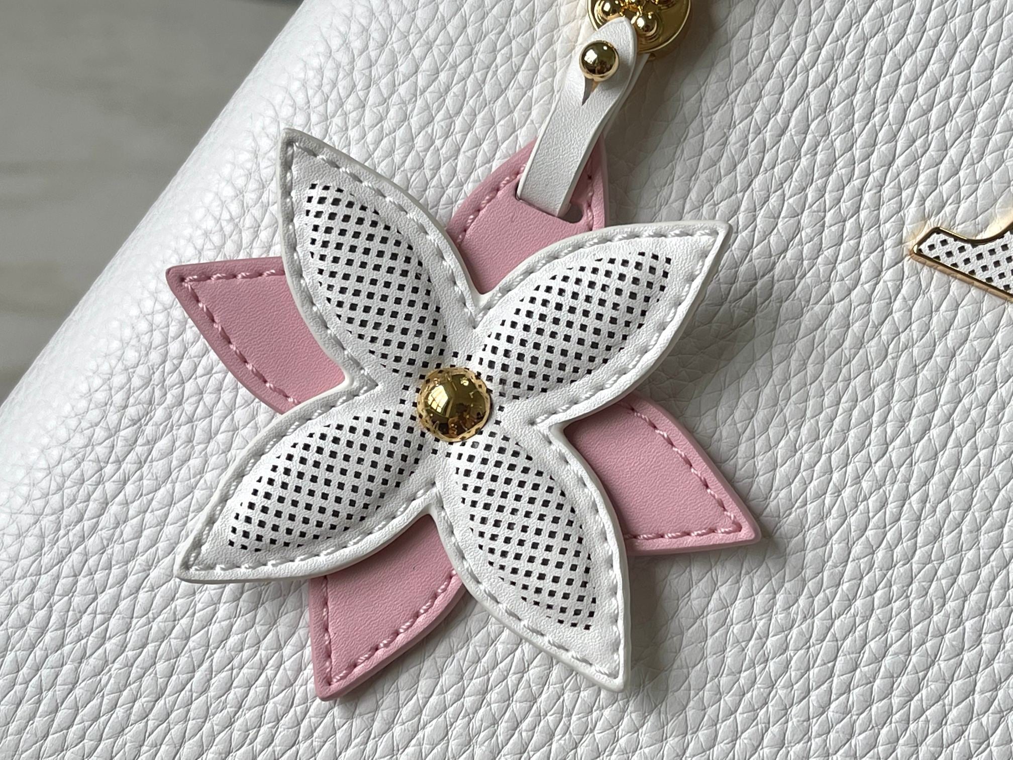 CAPUCINES BB 27 IN WHITE TAURILLON GOLD HARDWARE