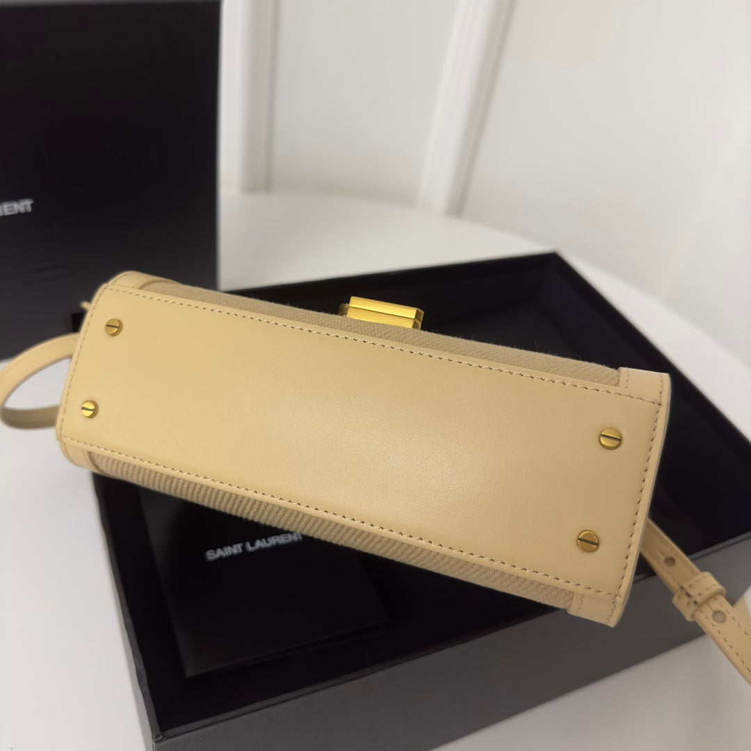 CASSANDRA 20 BEICREAM COTTON LINEN AND CALFSKIN