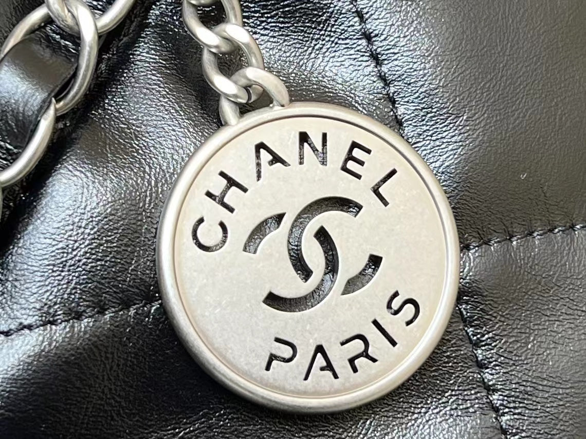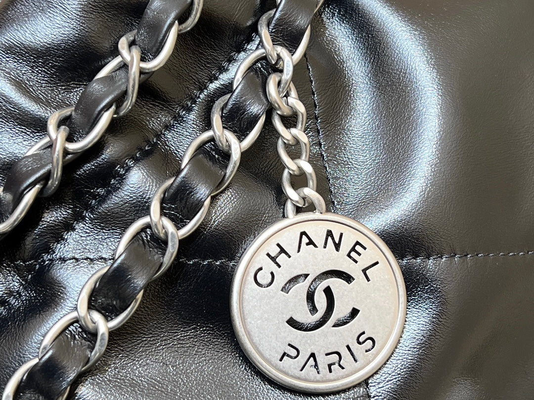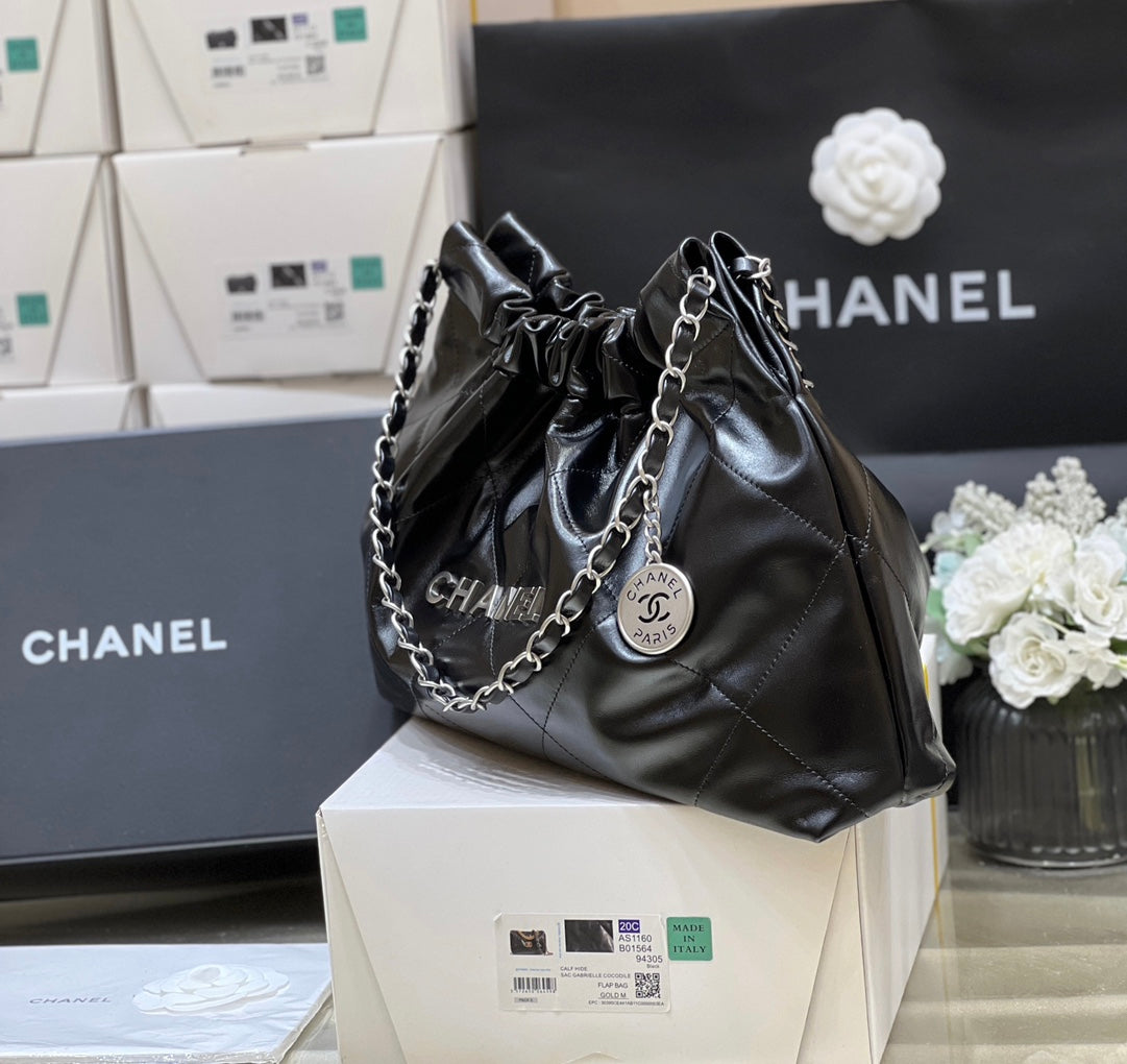 CC 19 HOBO BAG 43CM BLACK GOATSKIN SILVER HARDWARE