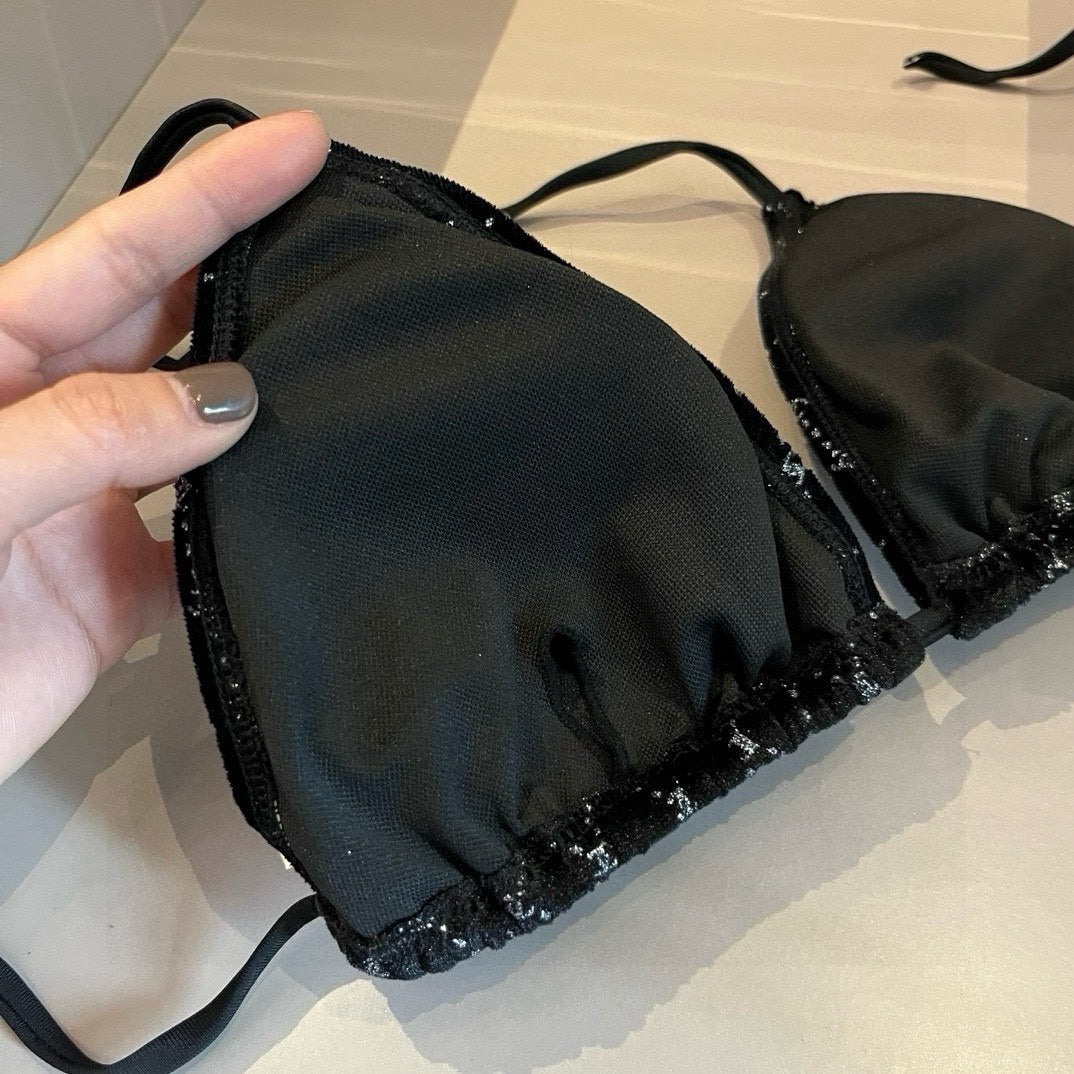 CC BIKINI SWIMSUIT SET IN BLACK AND WHITE PLAID 625992