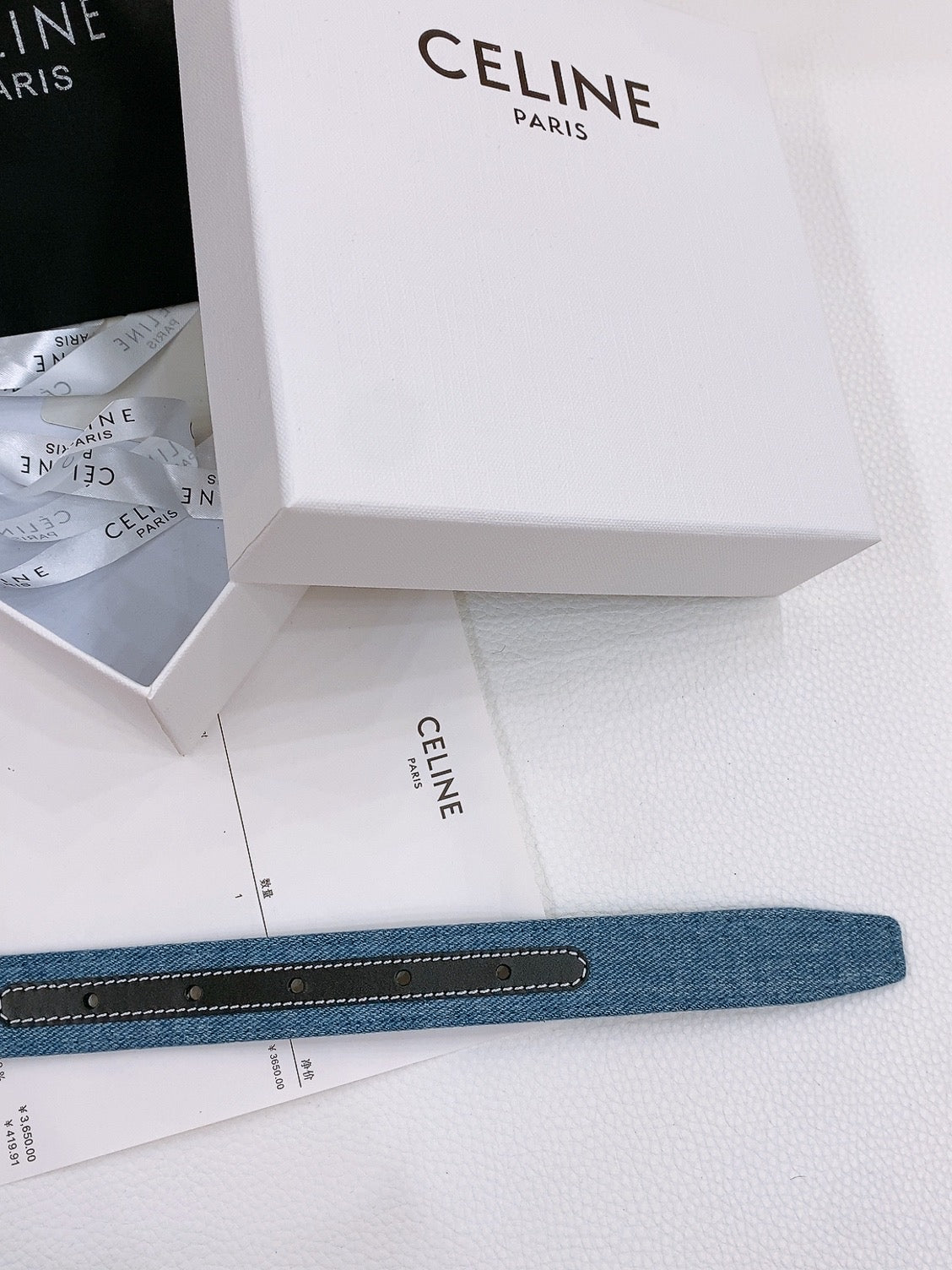 CELINE 25S BELT TRIOMPHE TAURILLON 25MM IN BLACK CALFSKIN AND DENIM 558342