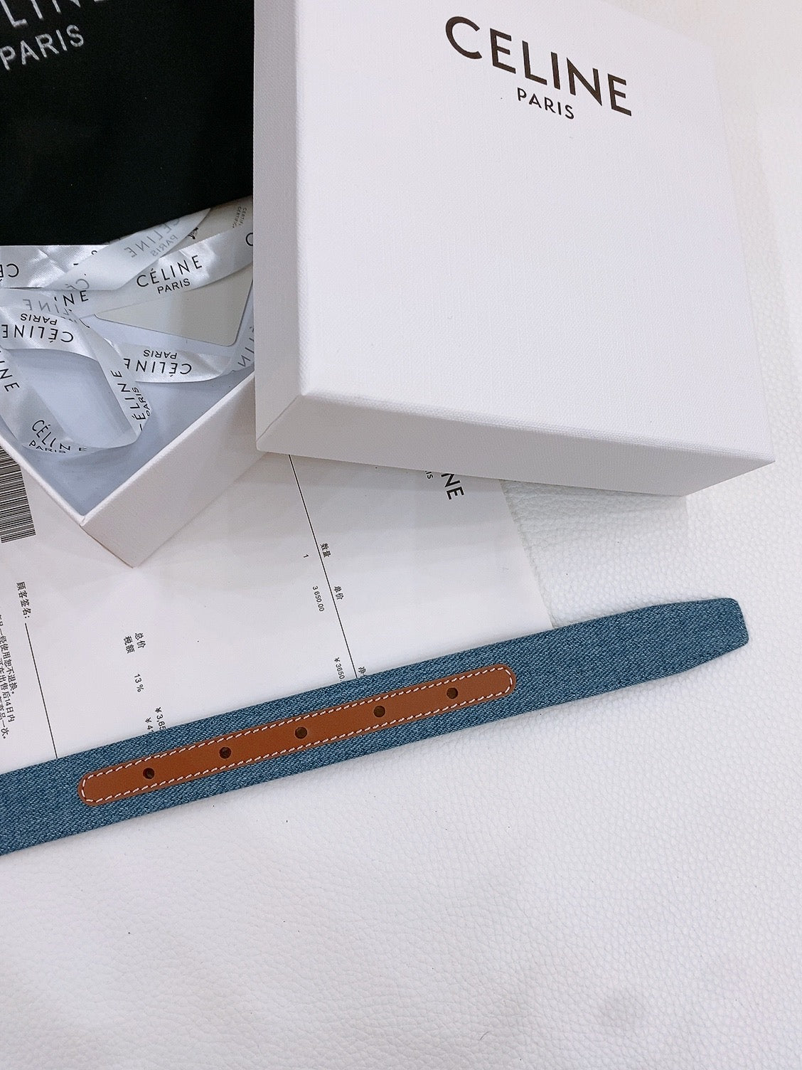 CELINE 25S BELT TRIOMPHE TAURILLON 25MM IN BROWN CALFSKIN AND DENIM 558354