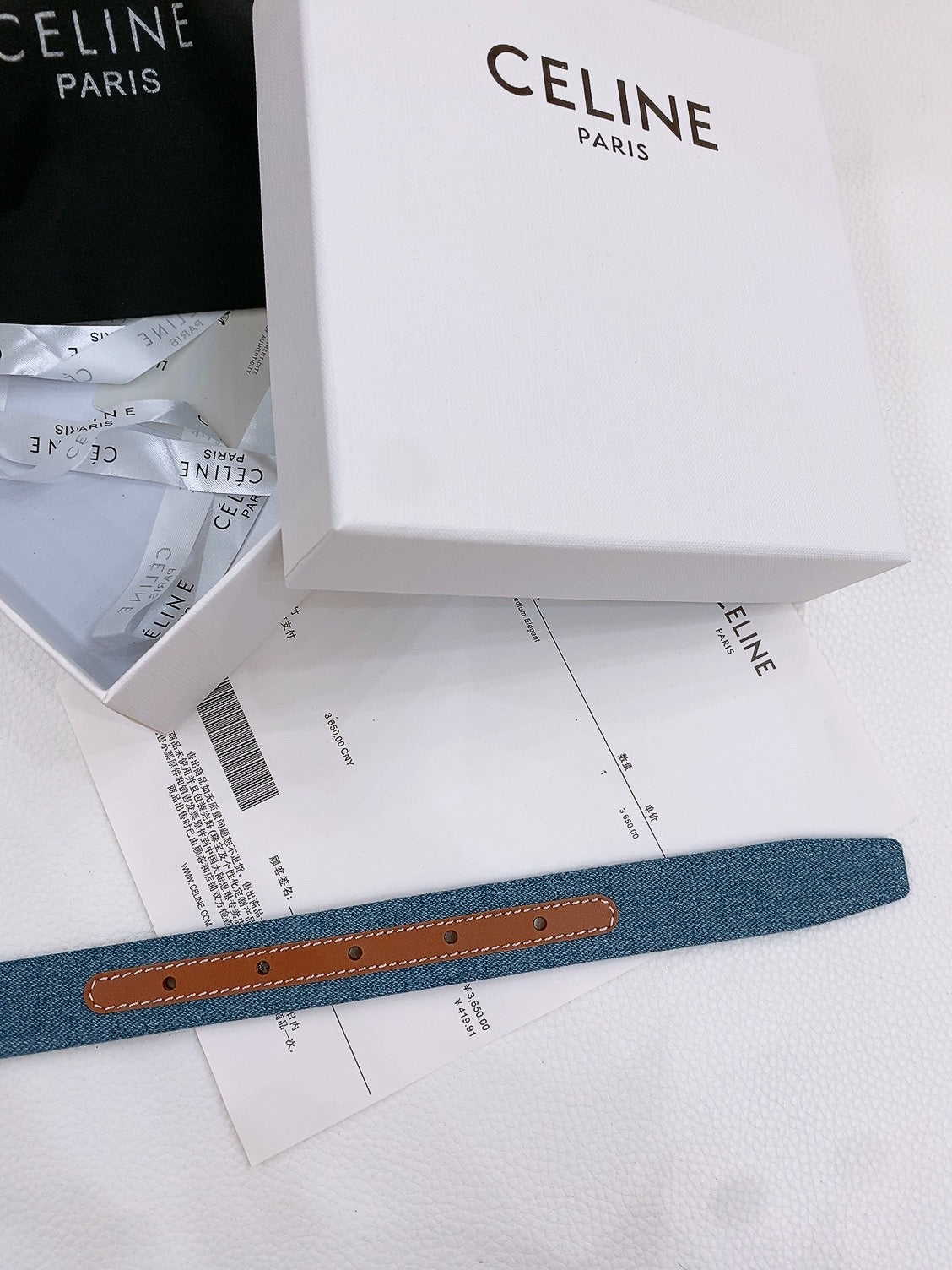 CELINE 25S BELT TRIOMPHE TAURILLON 25MM IN BROWN CALFSKIN AND DENIM 558357