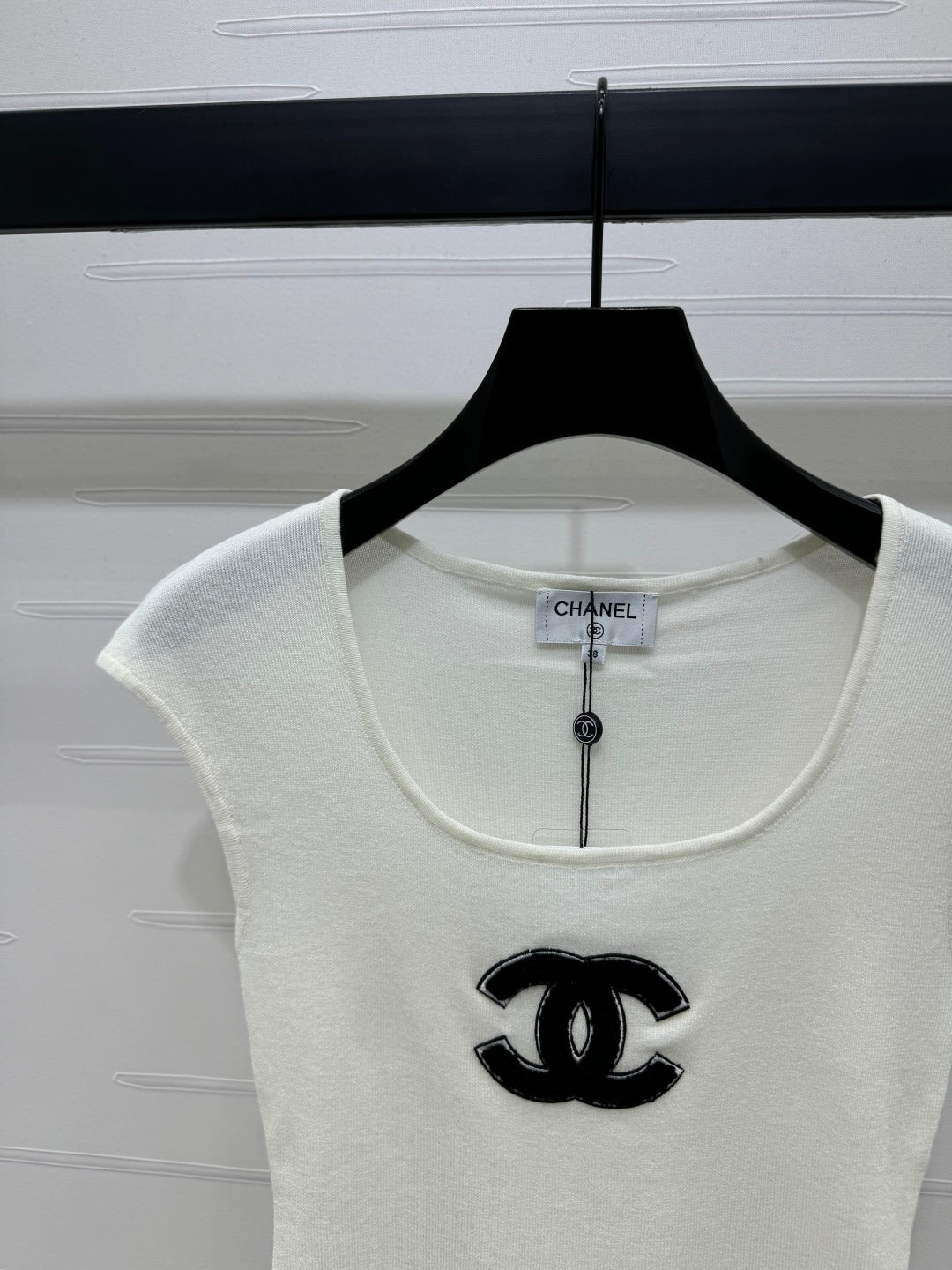 Chanel 25 White Tank Top Square Neck Knitted