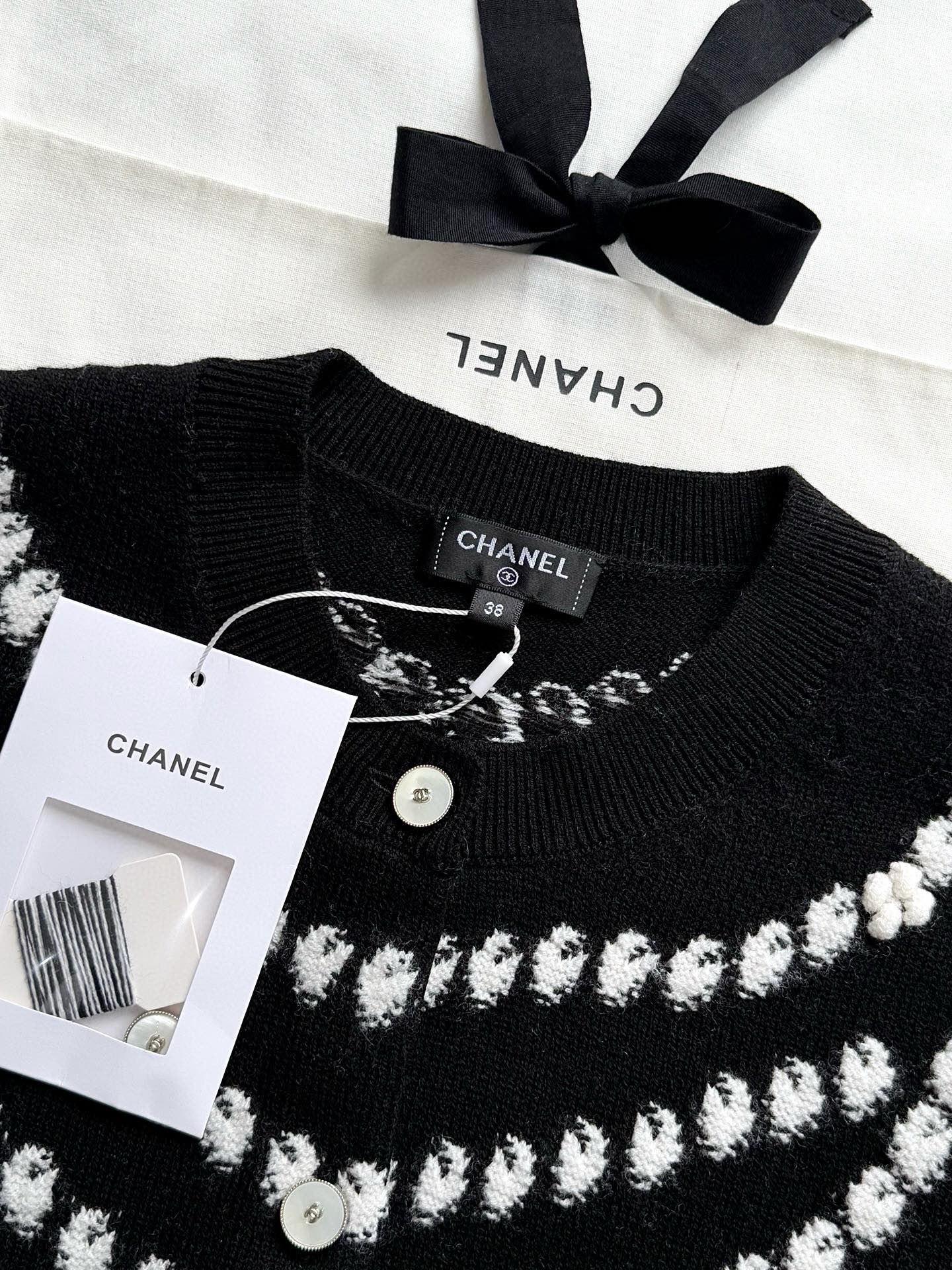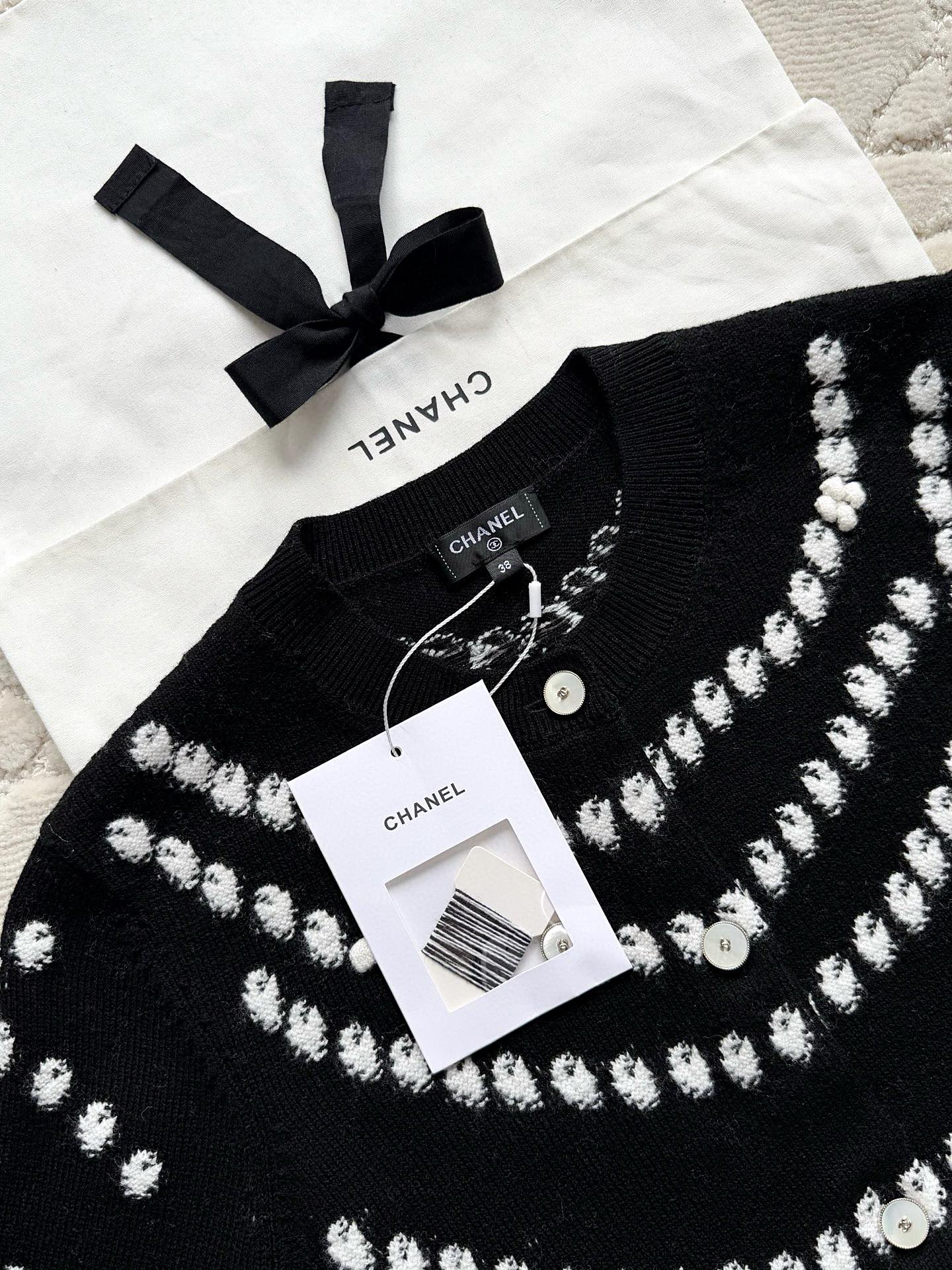 Chanel 25P Cardigan Black Mix White Cashmere 237301