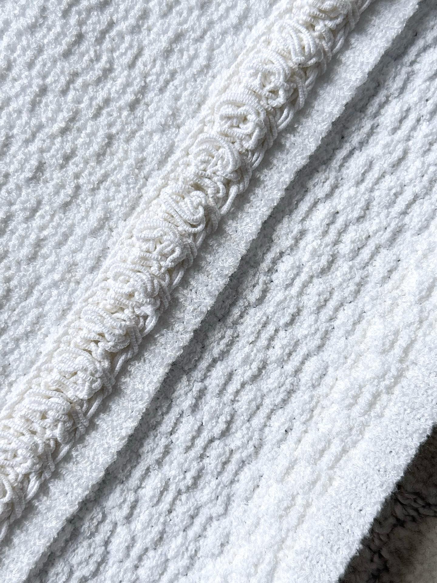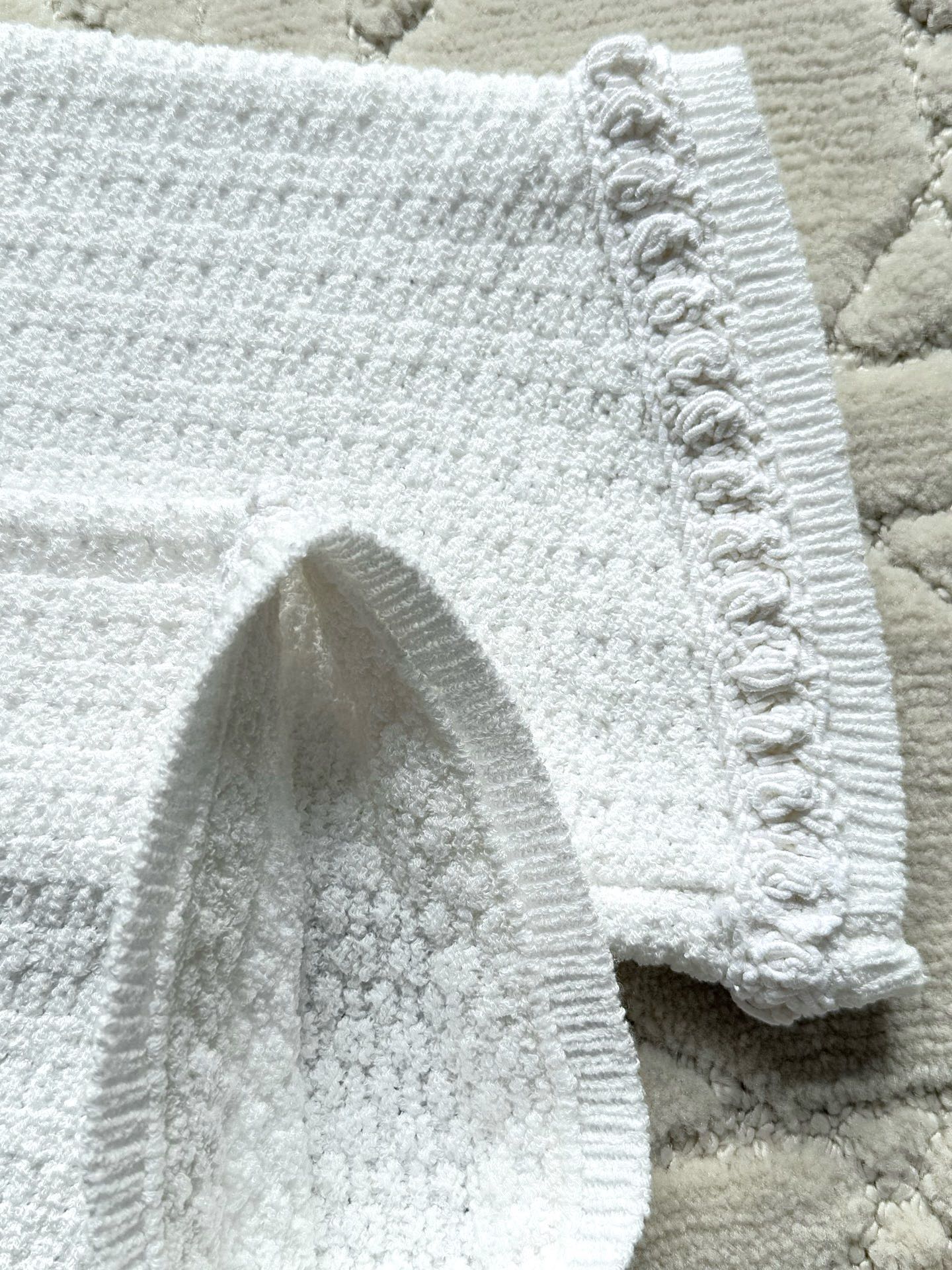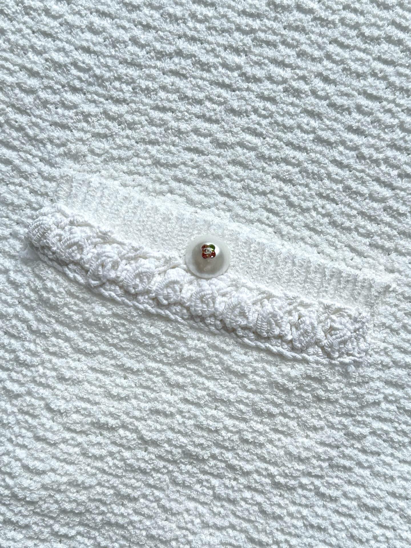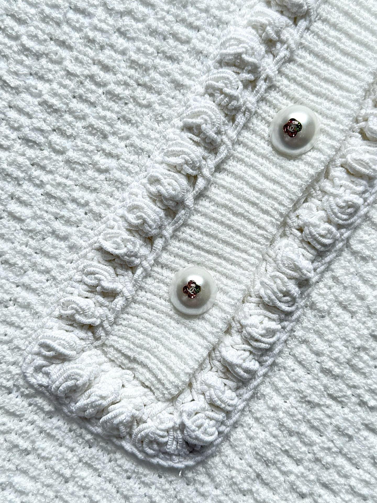 Chanel 25P Long-Sleeve Top White Tweed Pearl Buttons 237299