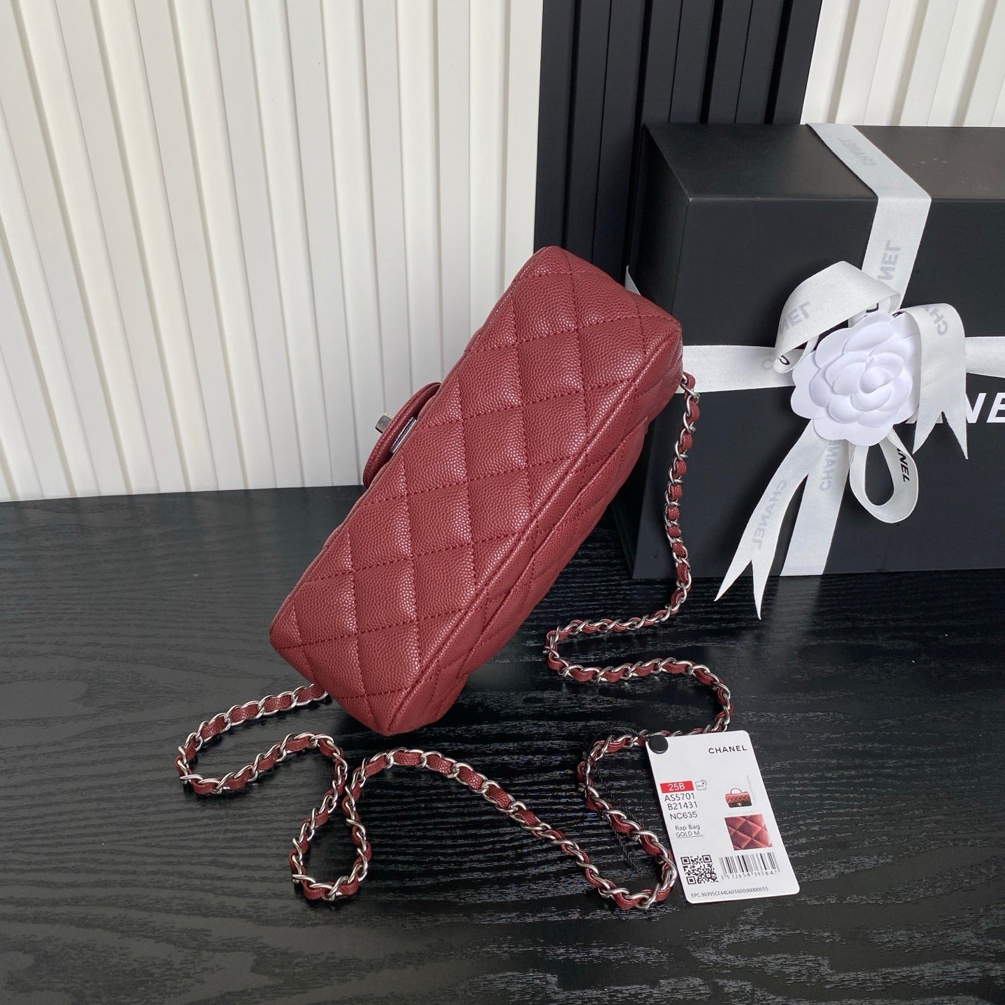 CHANEL 25S FLAP BAG 19 IN BURGUNDY CALFSKIN SILVER HARDWARE
