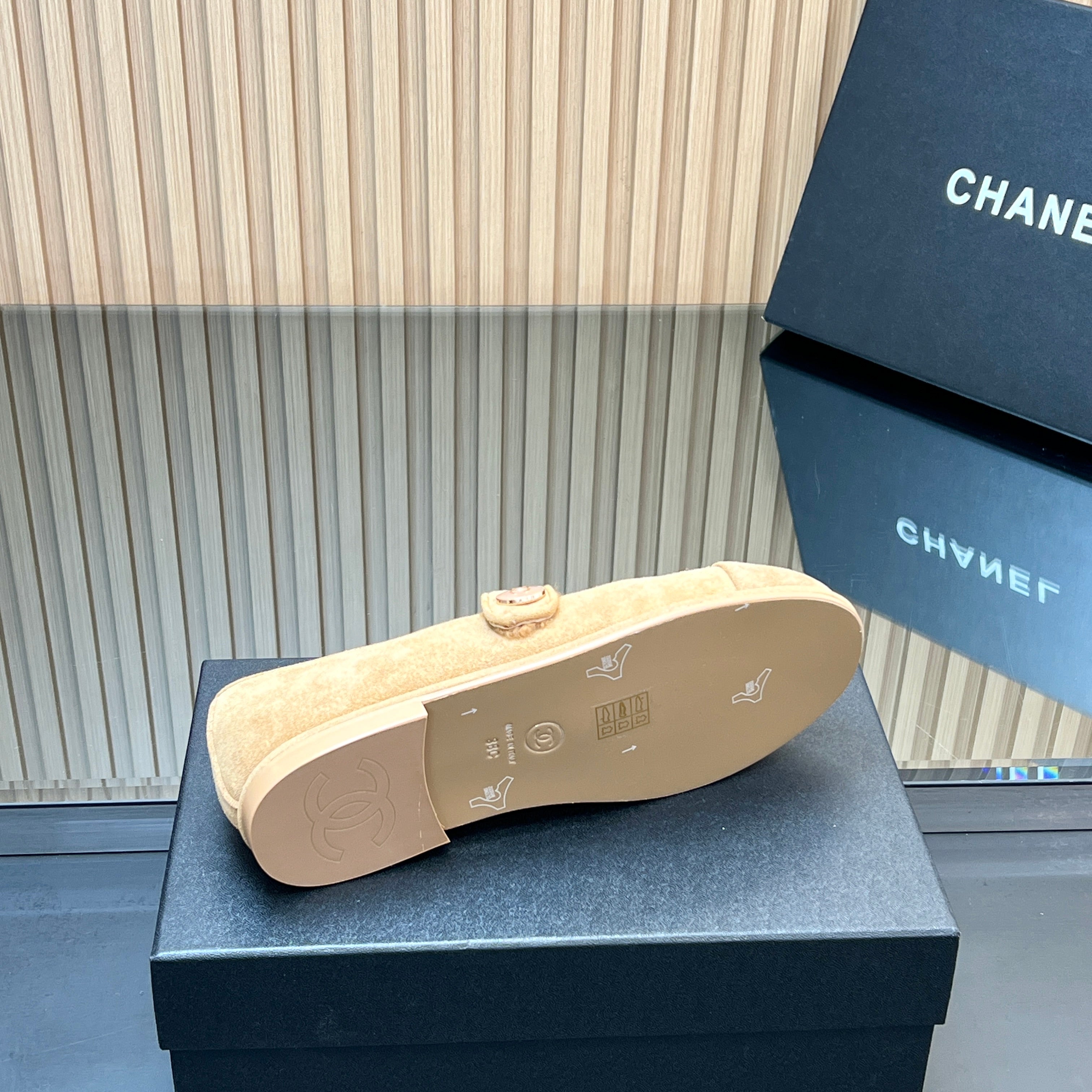 CHANEL 25S FURRY MARY JANE SHOES IN LIGHT BROWN SUEDE