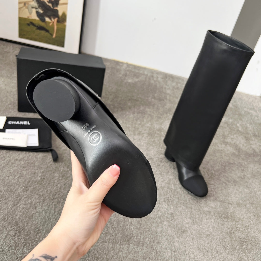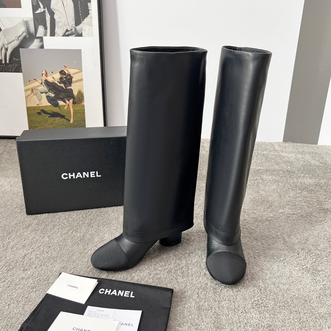 CHANEL 25S HIGH BOOTS 55MM IN BLACK CALFSKIN AND CANVAS GOLD HARDWRE