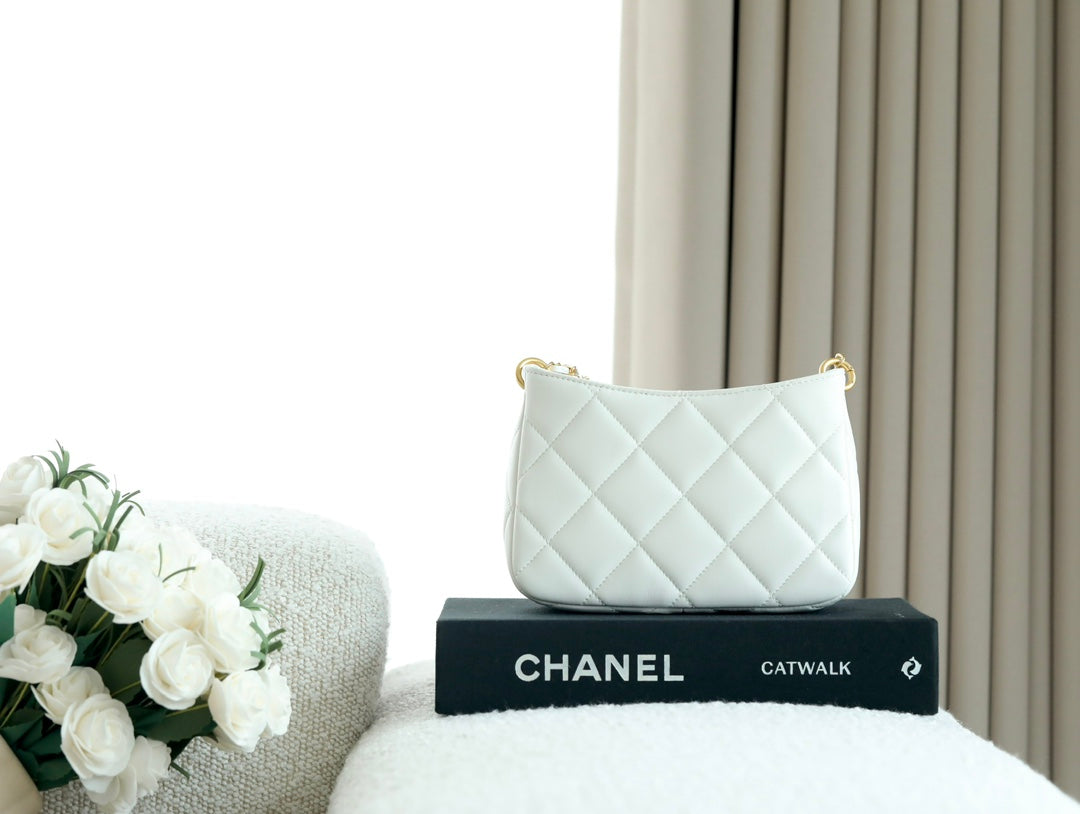 CHANEL 25S HOBO BAG 19.5 CM IN WHITE CALFSKIN WITH GOLD HARDWARE