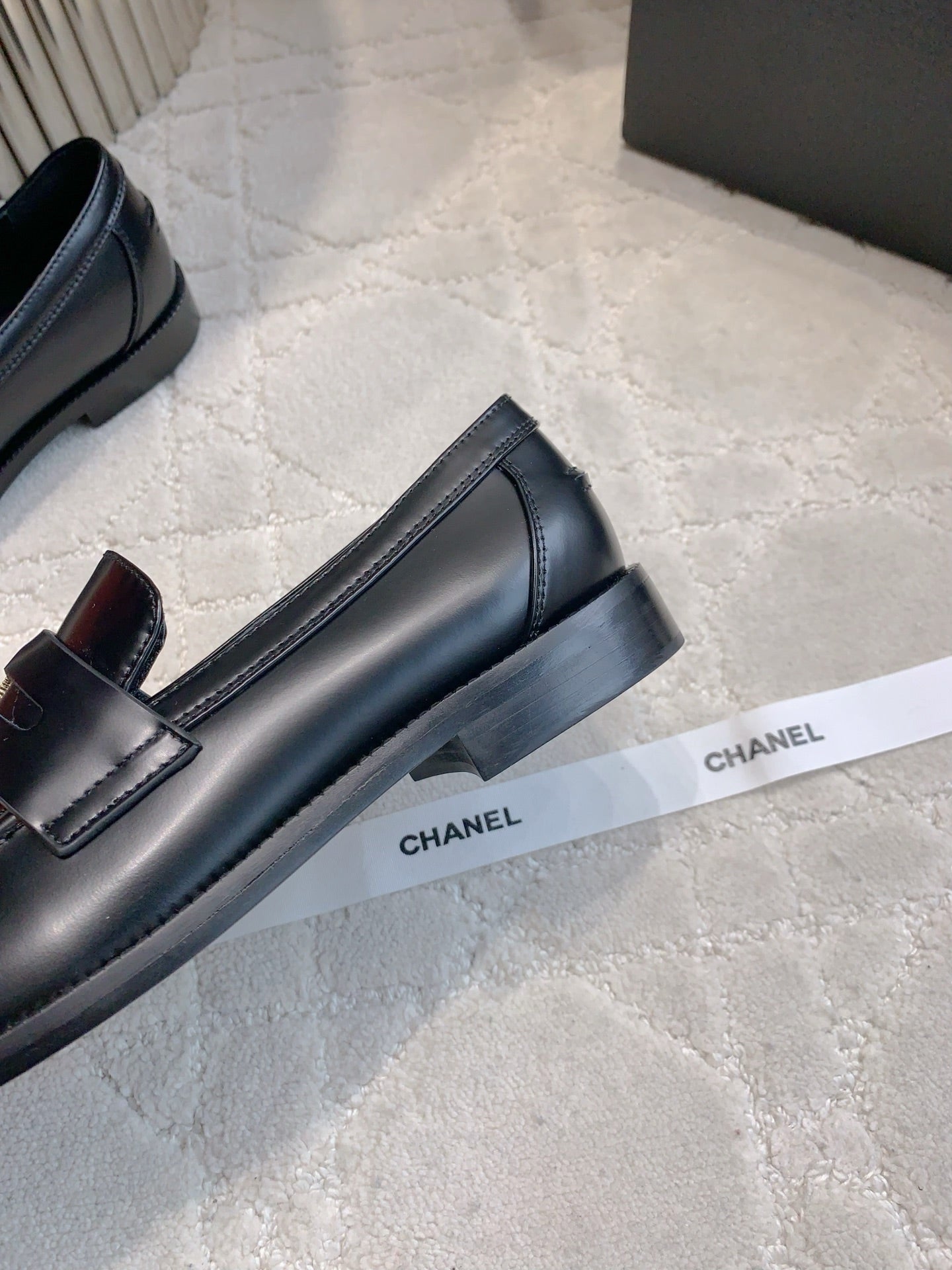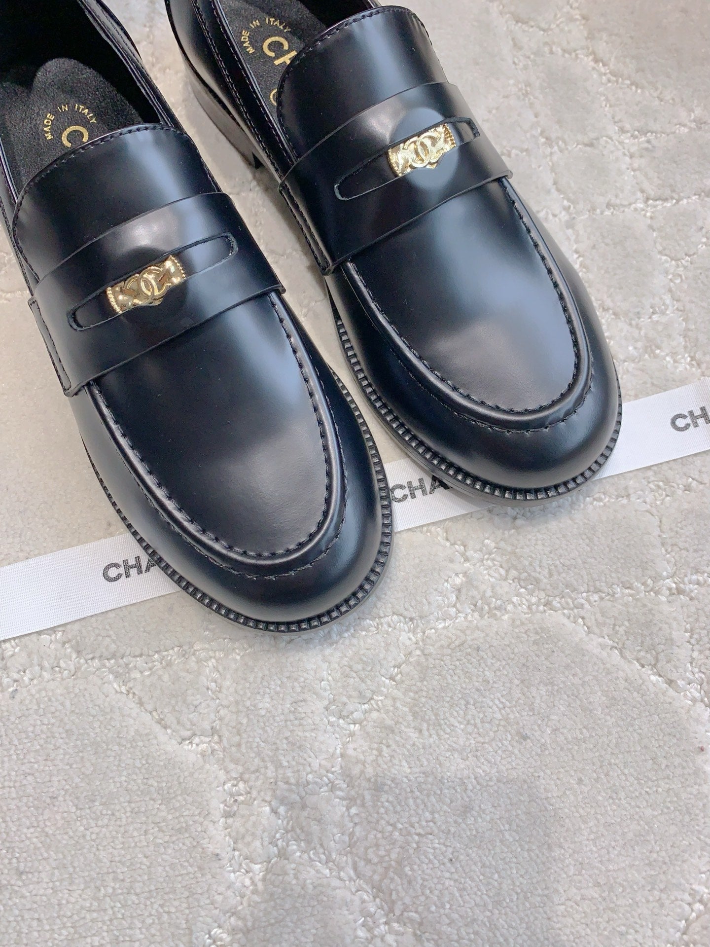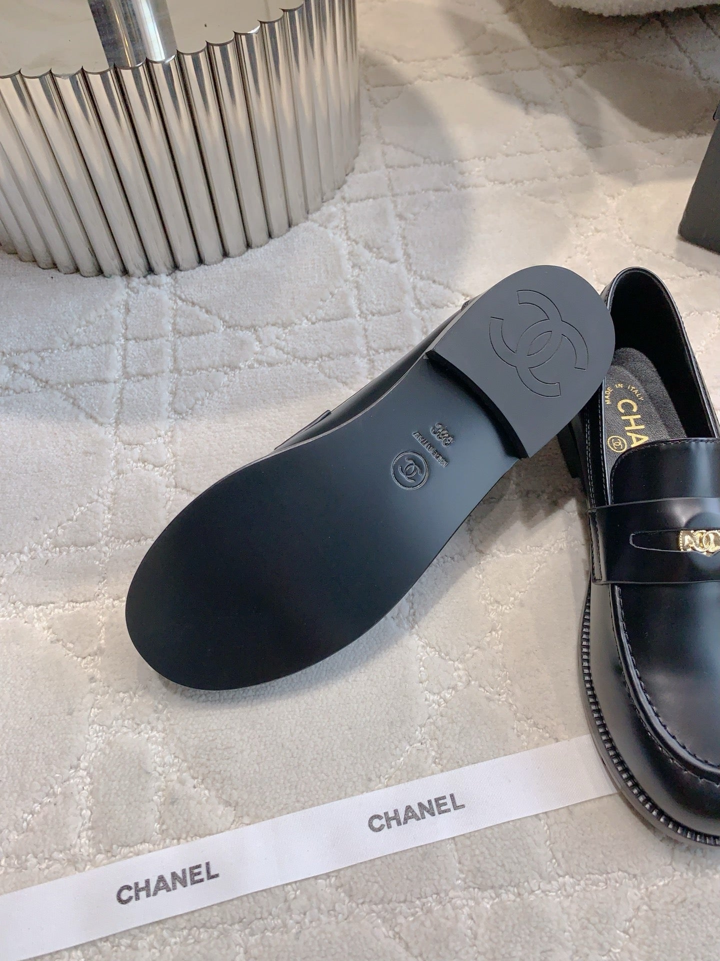 CHANEL 25S MOCCASINS IN BLACK SHINY CALFSKIN GOLD HARDWARE
