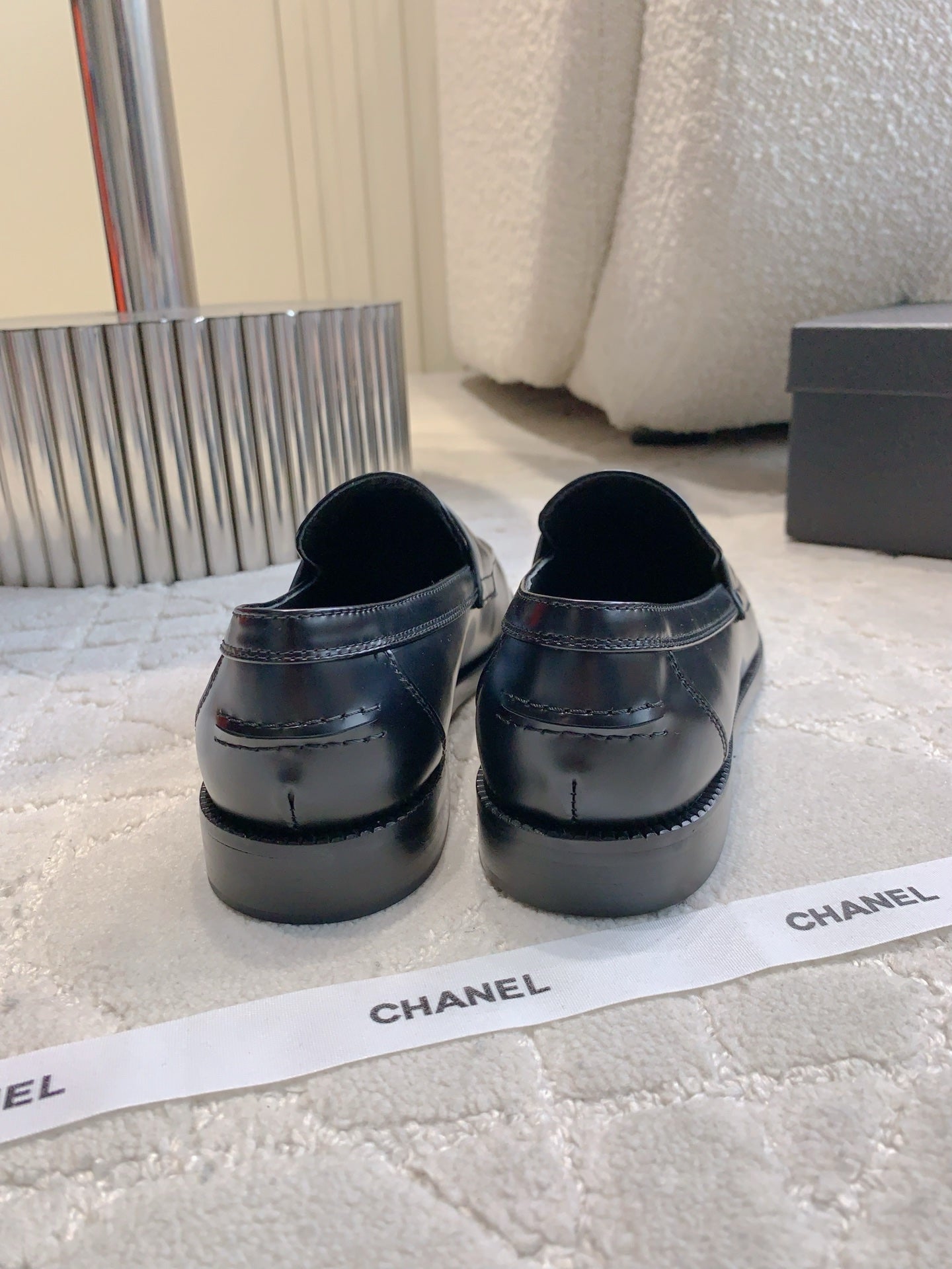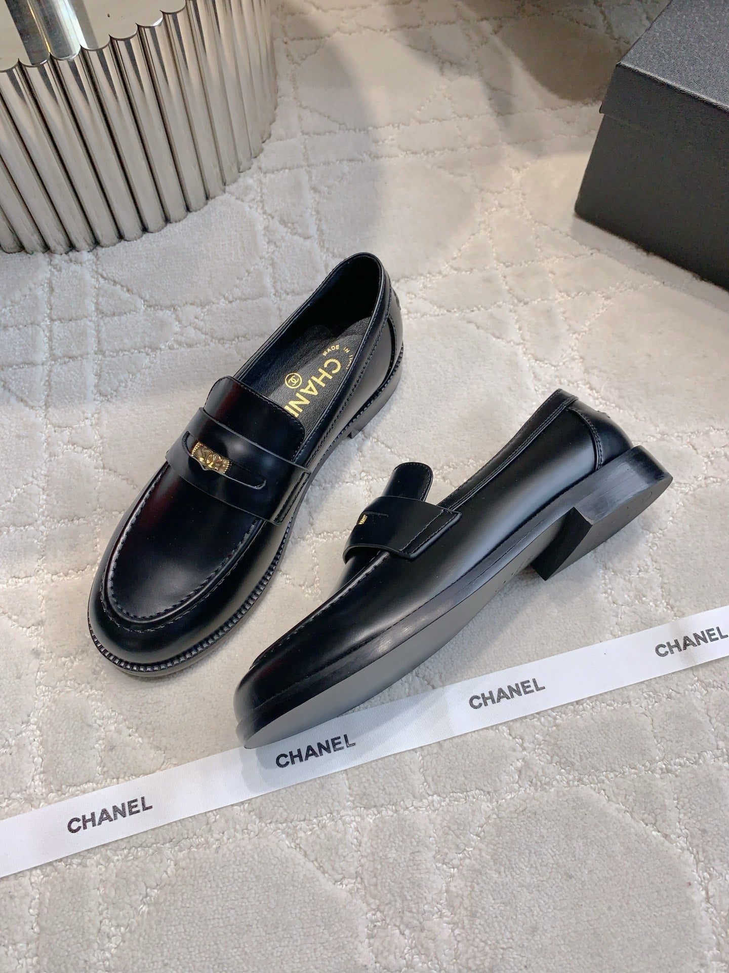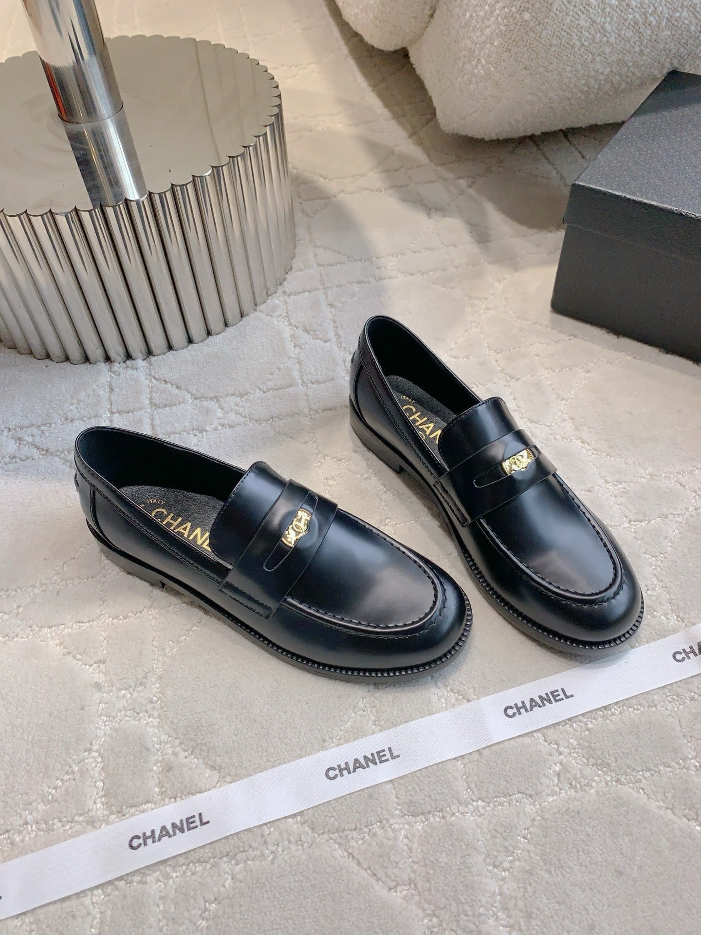 CHANEL 25S MOCCASINS IN BLACK SHINY CALFSKIN GOLD HARDWARE