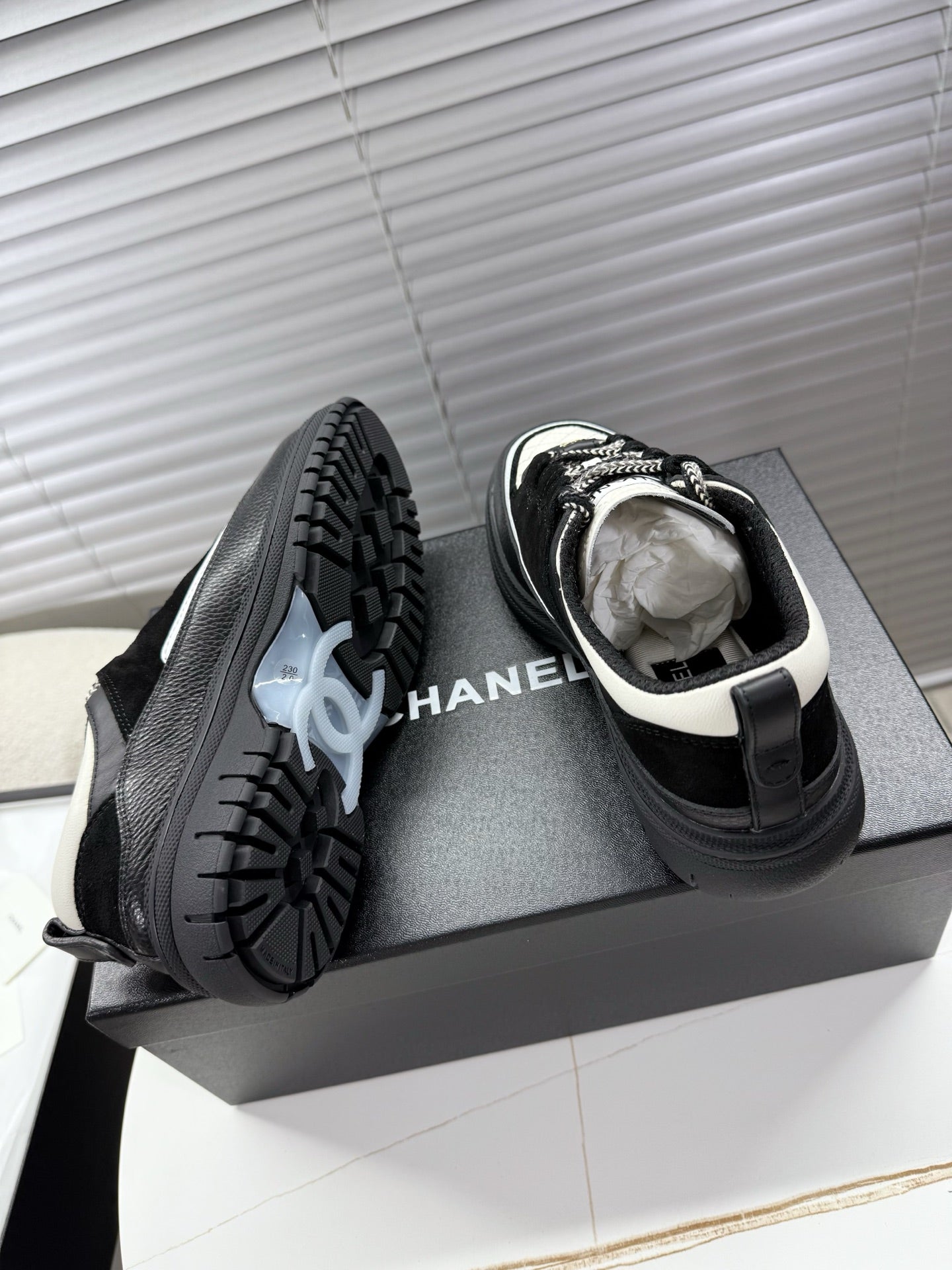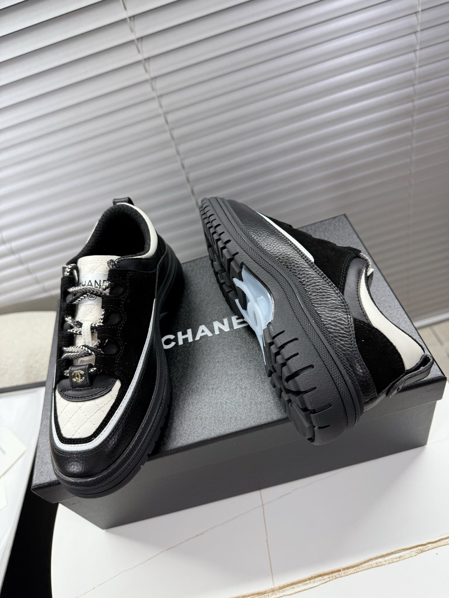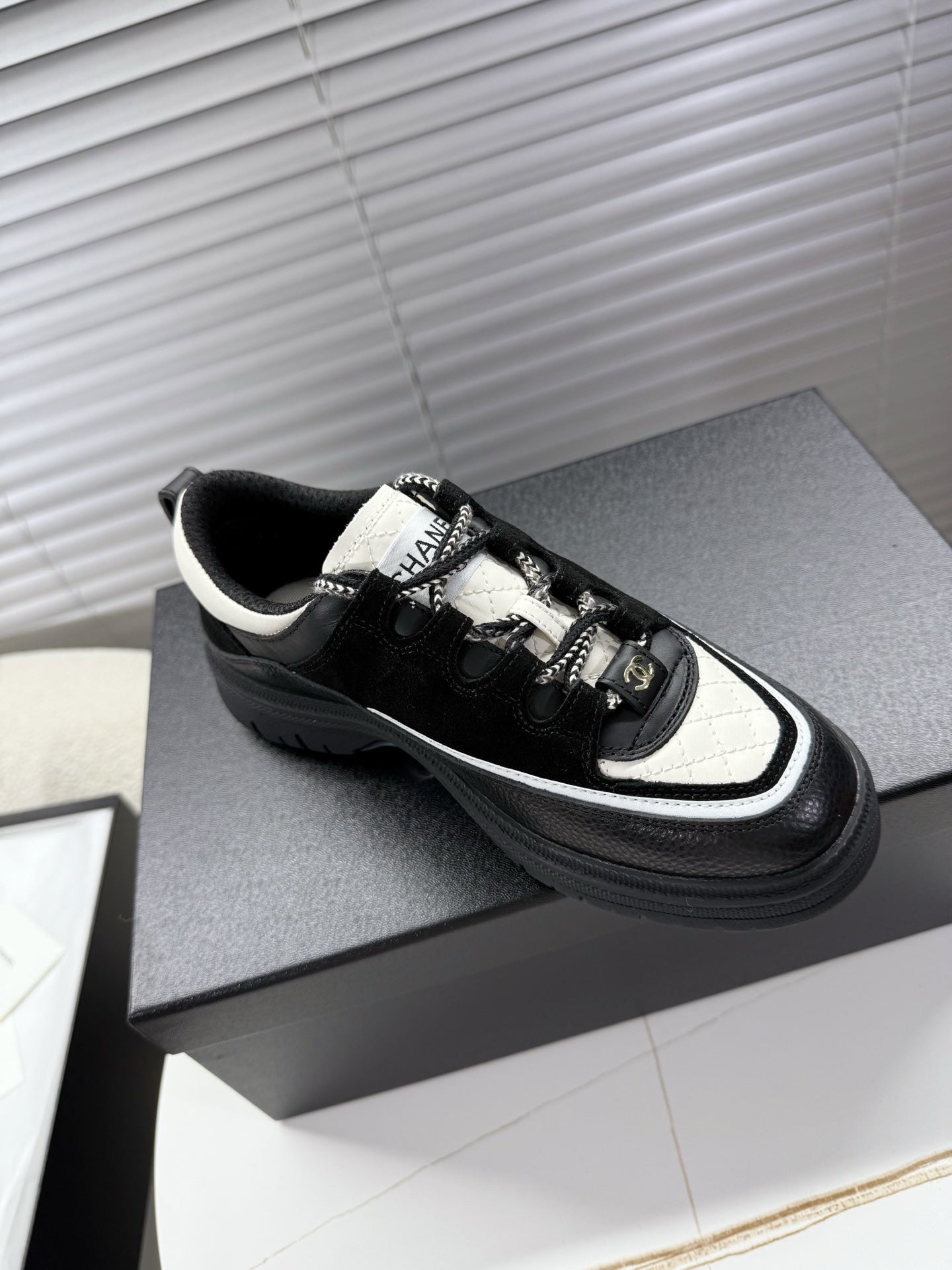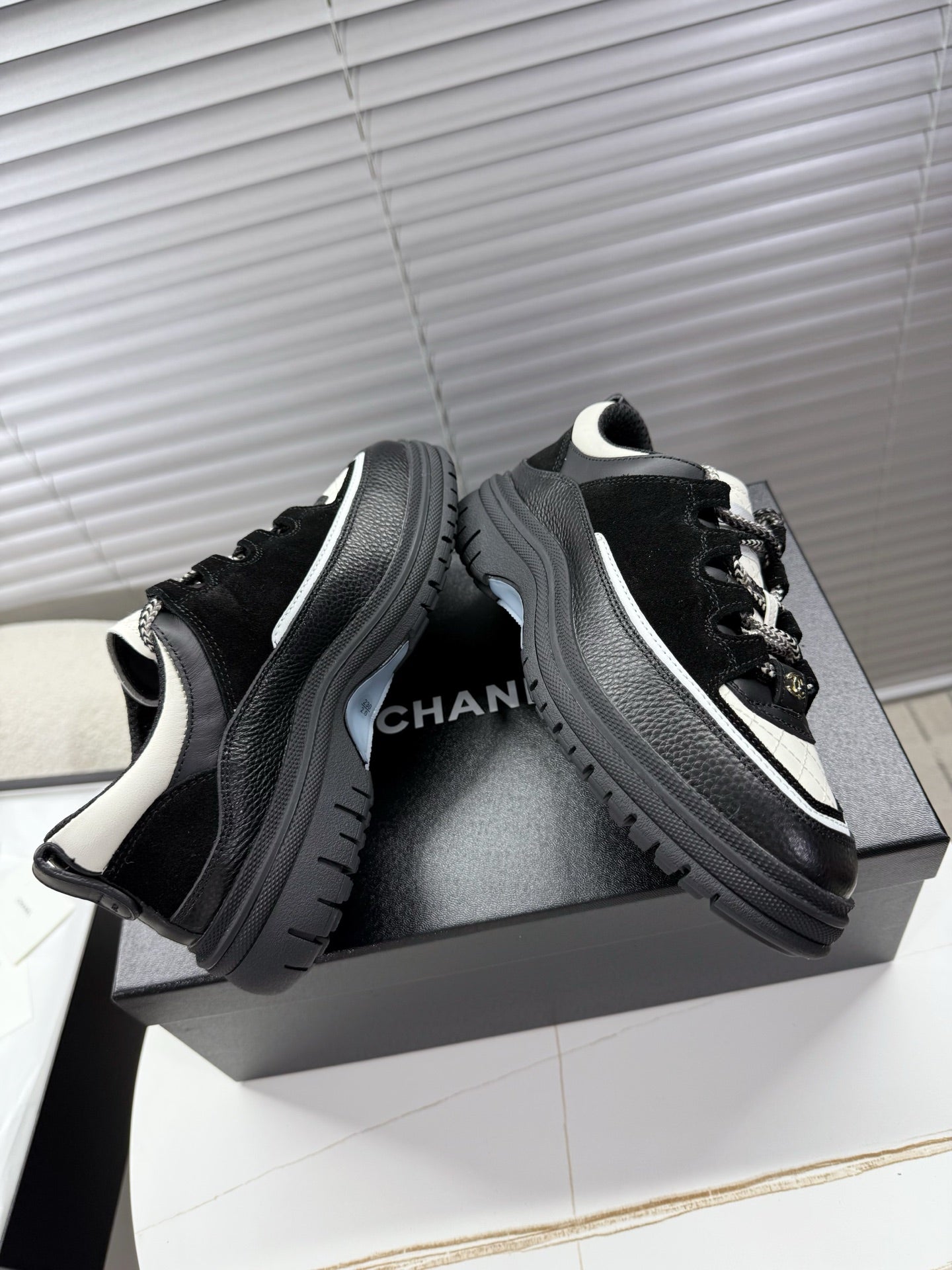 CHANEL 25S SNEAKERS 35MM IN BLACK AND WHITE CALFSKIN