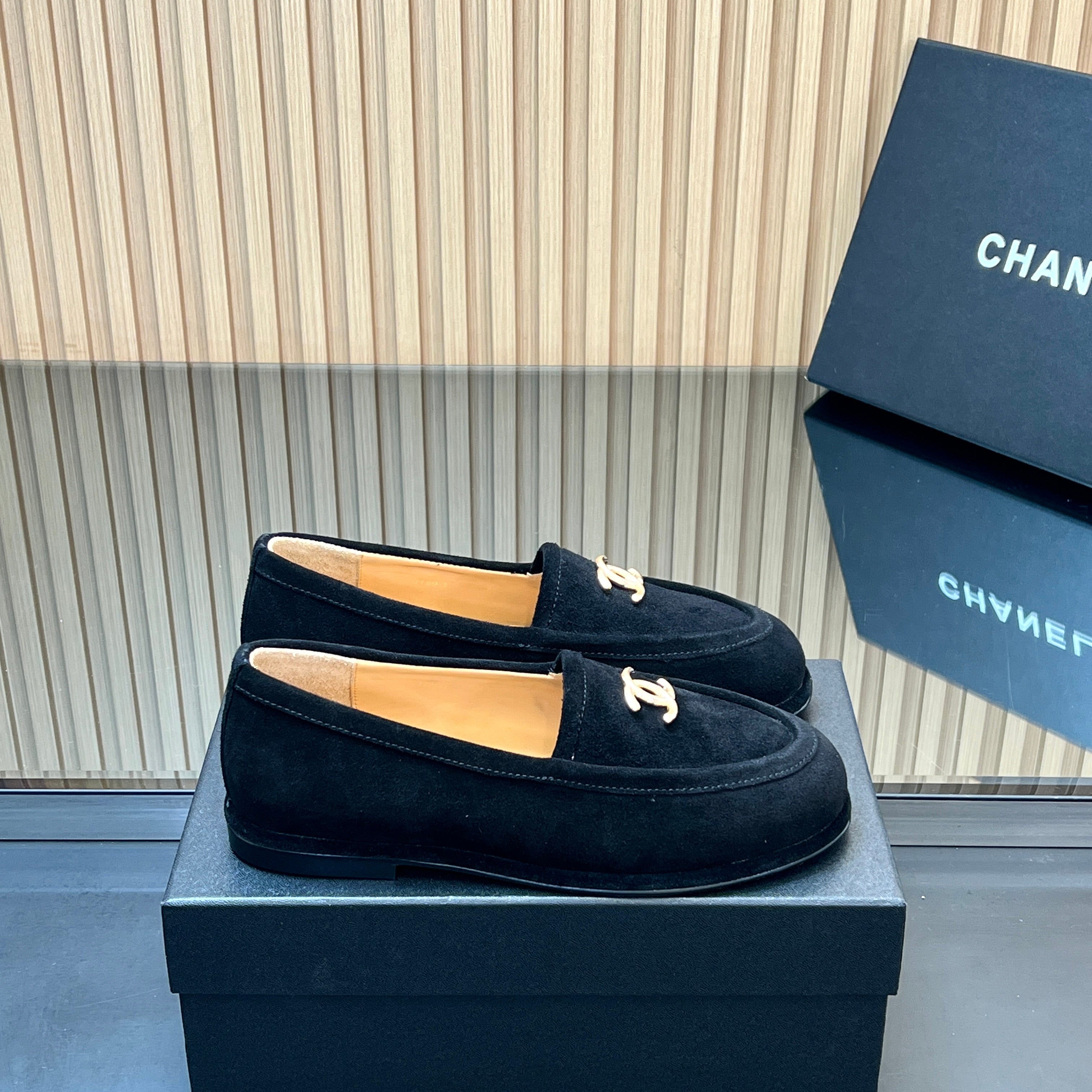 CHANEL 25S TEDDY LOAFER 15MM IN BLACK SUEDE