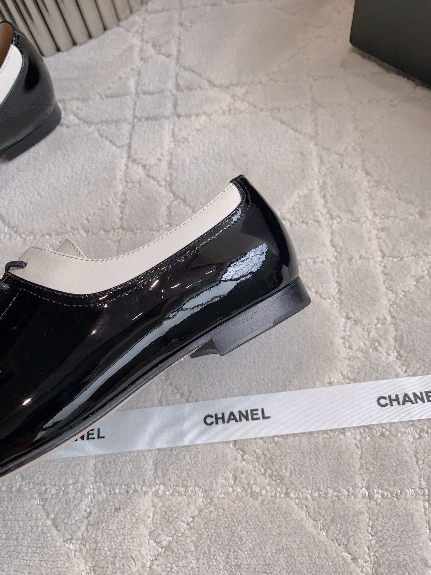 CHANEL 25S TWO TONE LACE UP IN BLACK AND WHITE SHINY CALFSKIN