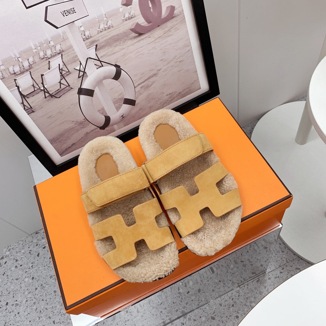 Chypre Sandal Beige shearling insole Light Brown Velvet leather lining