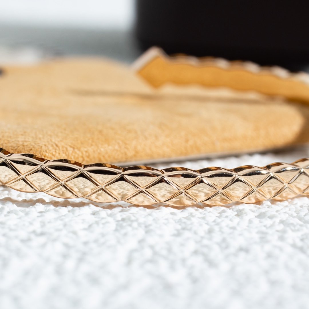 3. Please be aware that when you receive a new bracelet it will feel stiff, which can make it uncomfortably tight. The bracelet will quickly soften and become more flexible as you wear it.