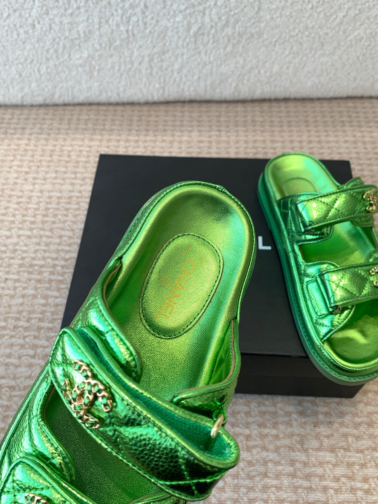 • Material: Sheepskin, exclusive hardware buckle, uniquely designed logo.