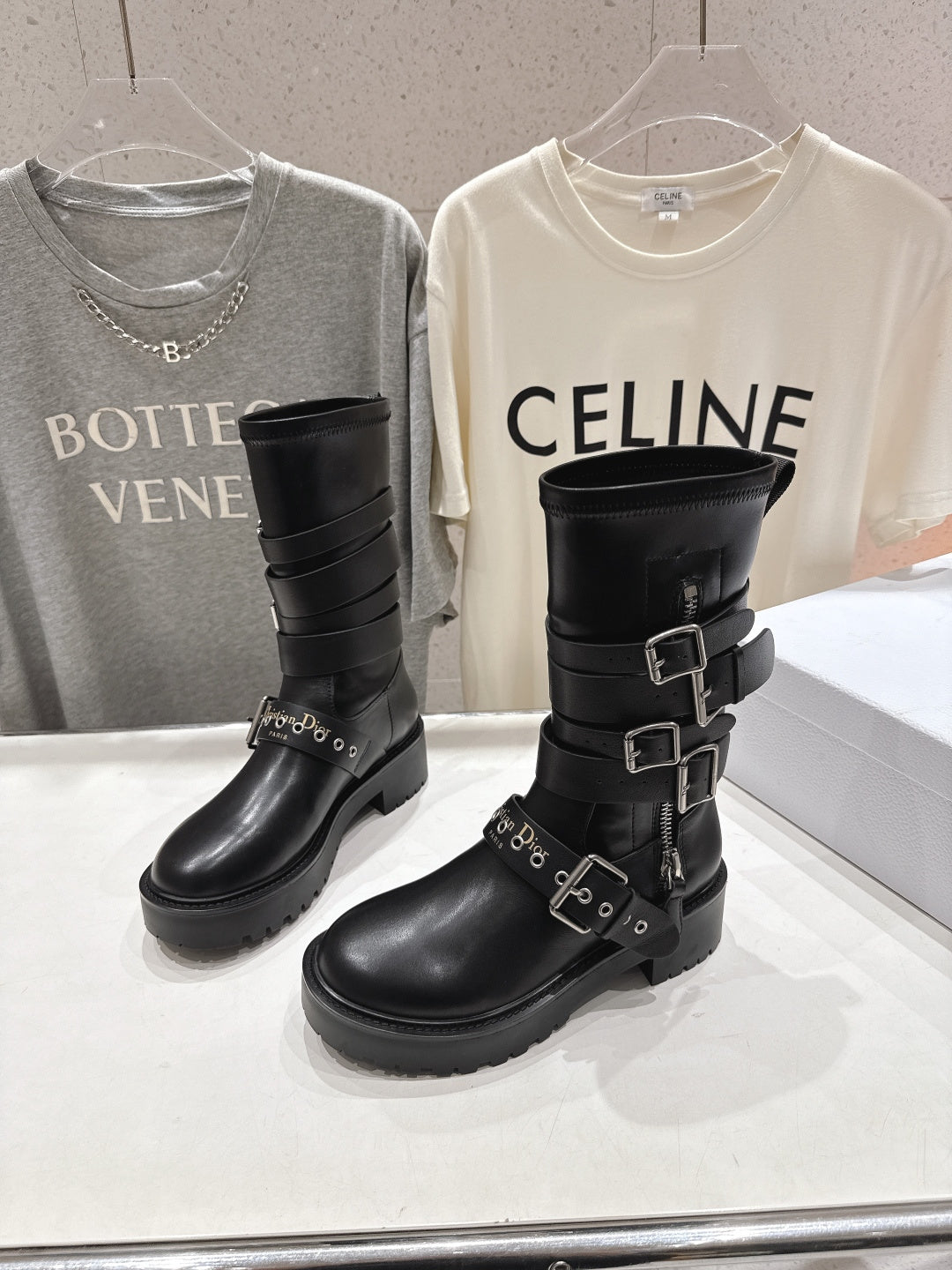 DIOR 25S BIKER BOOTS IN BLACK CALFSKIN WITH SILVER HARDWARE