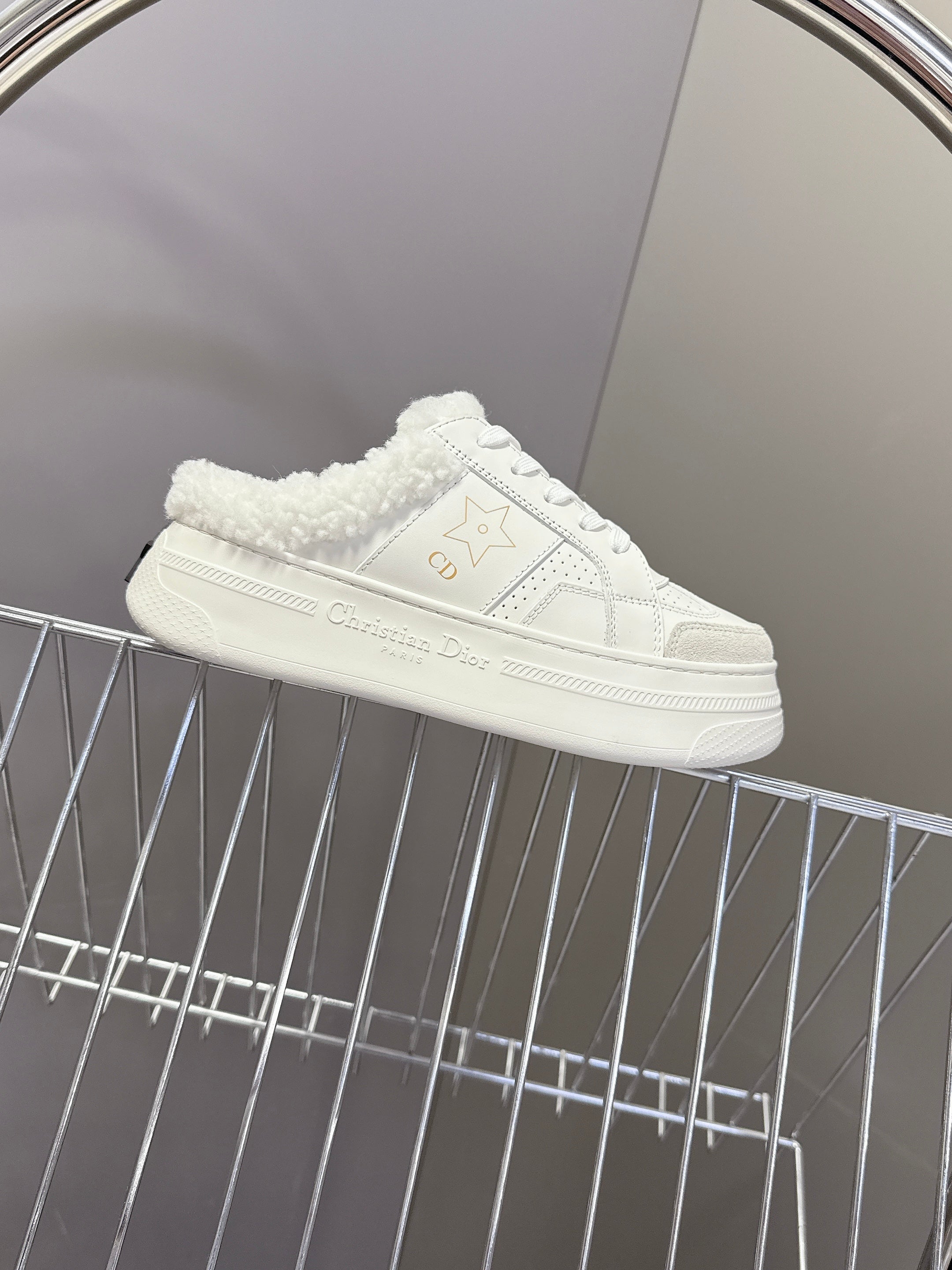 DIOR 25S DIOR STAR SNEAKERS 40 MM IN WHITE LAMBSKIN AND WOOL