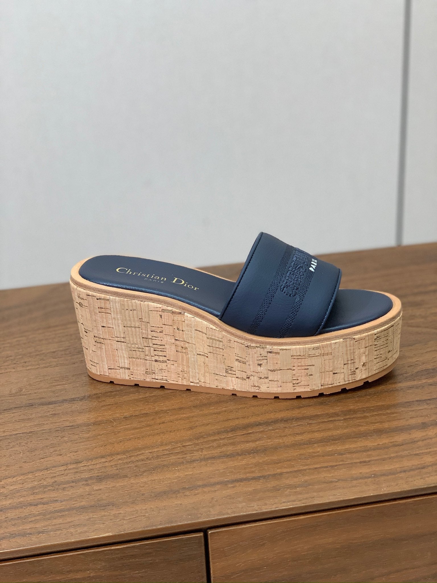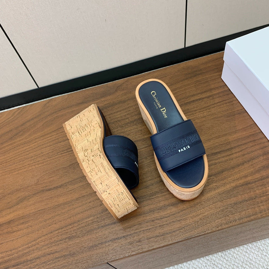 DIOR 25S DWAY WEDGE SLIDE 90 MM IN DEEP NAVY BLUE CALFSKIN