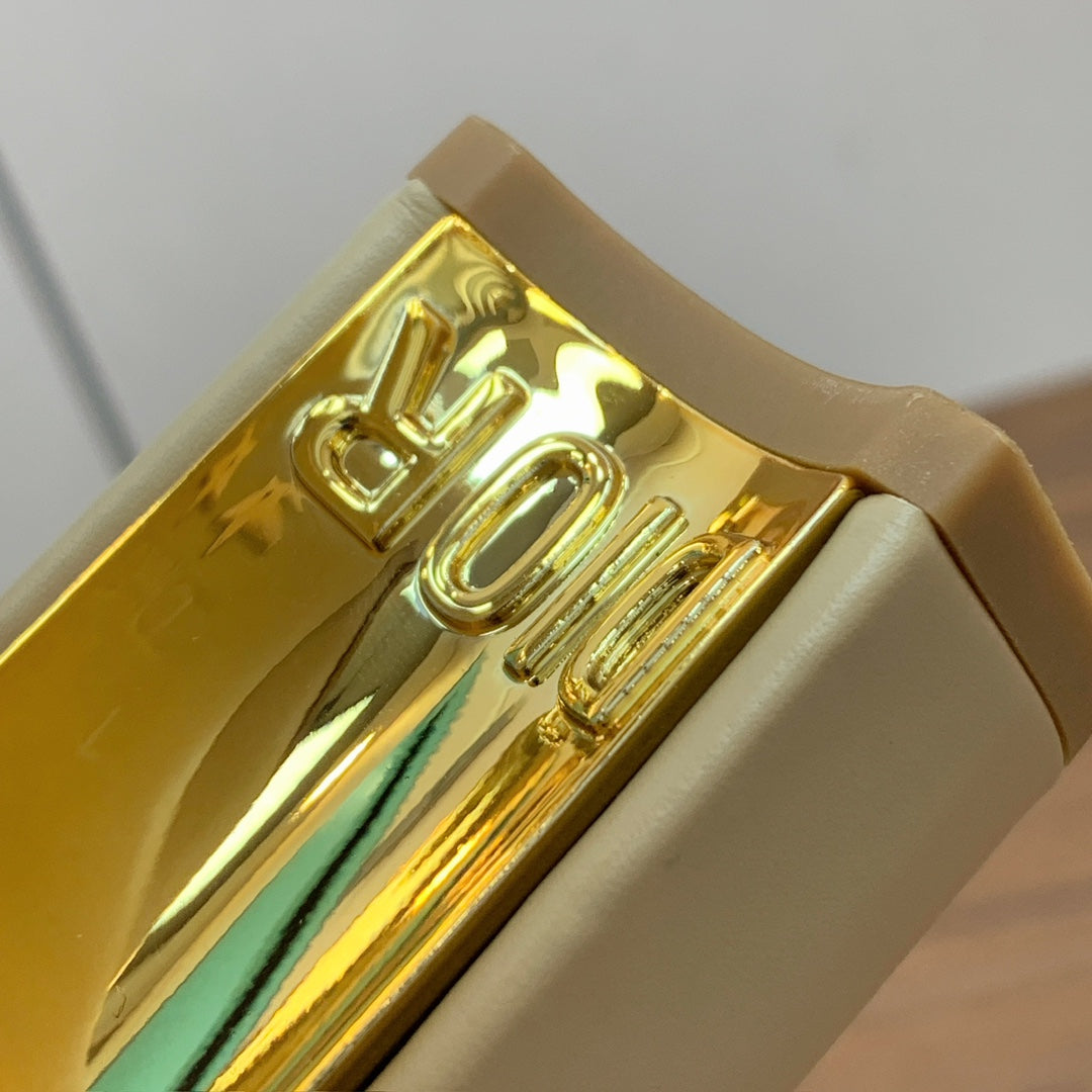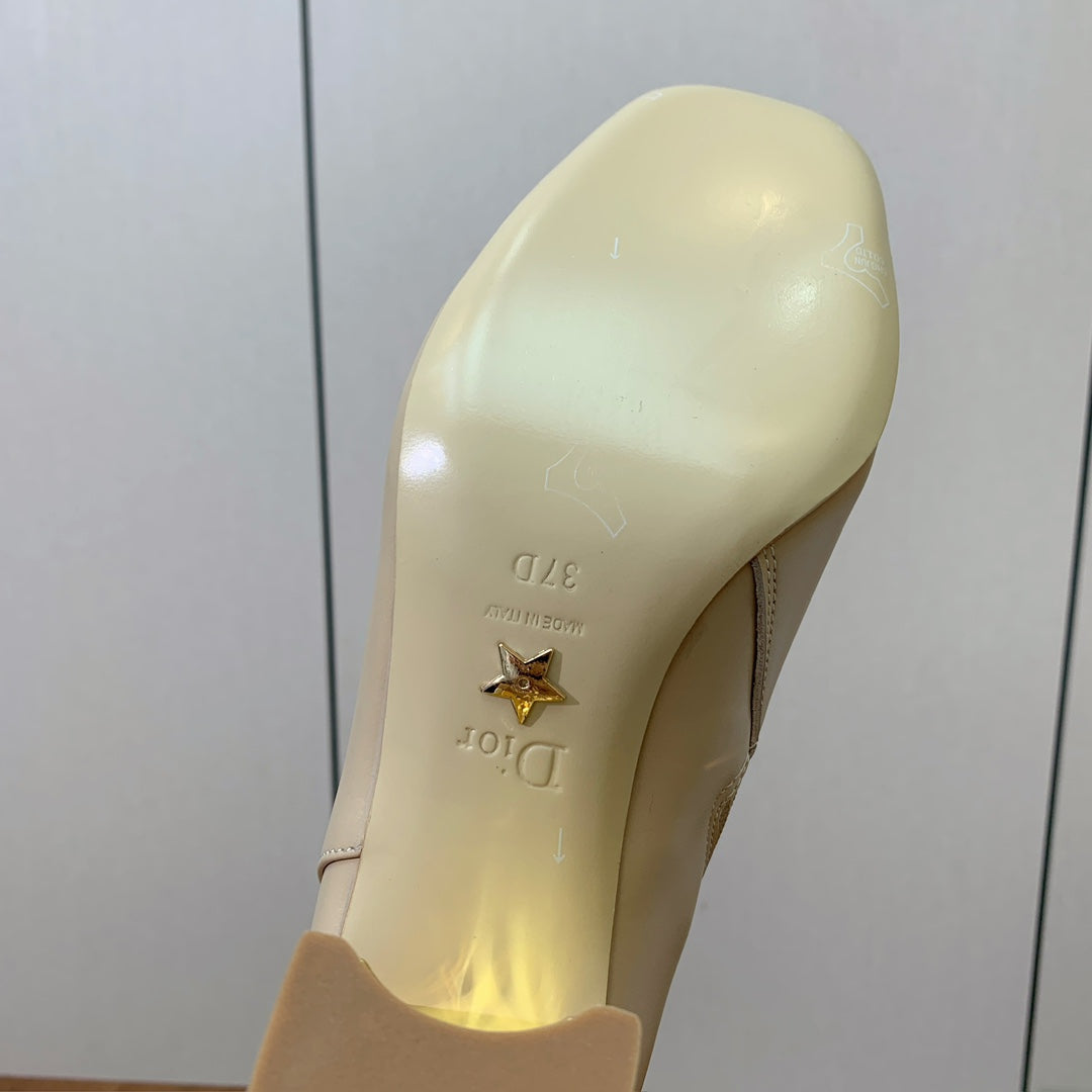 DIOR 25S KNEE-HIGH BOOTS 80 MM IN BEIGE CALFSKIN WITH GOLD HARDWARE