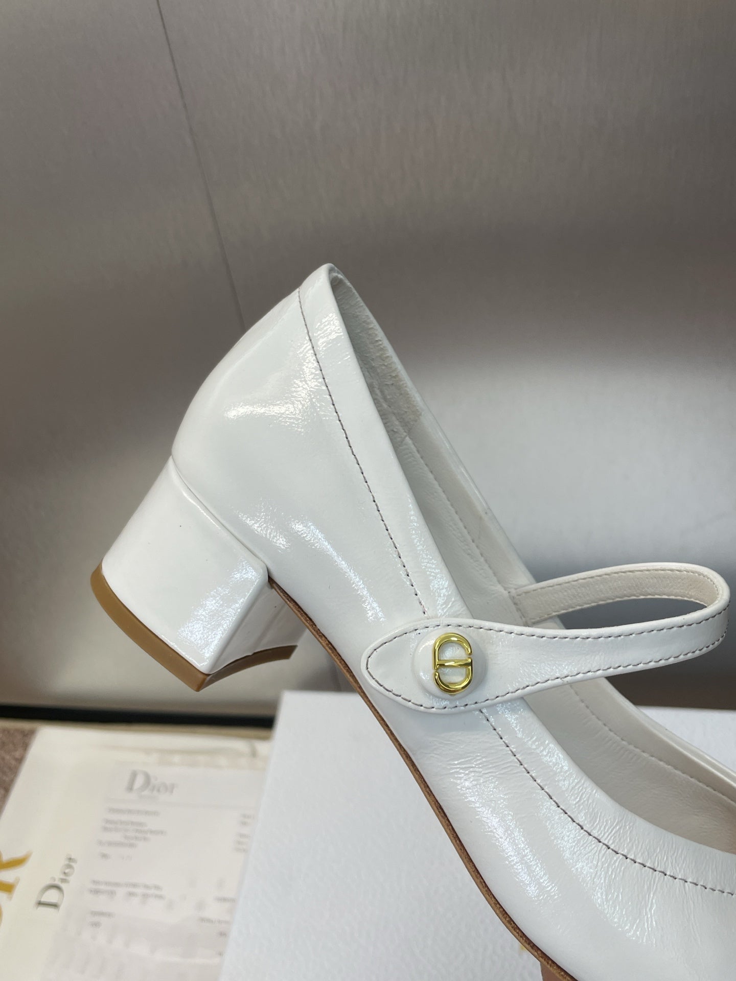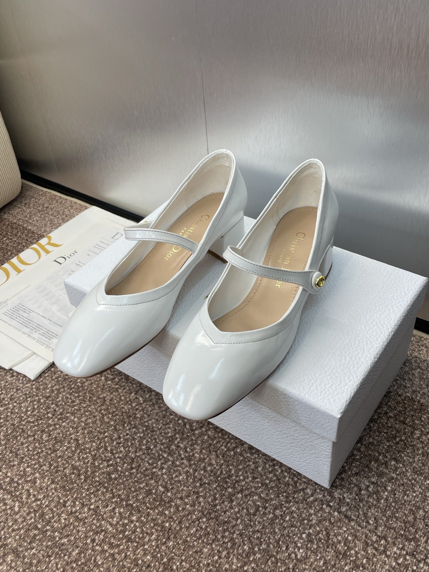 DIOR 25S ROUND-TOE MARY JANE BALLET FLATS IN WHITE CALFSKIN