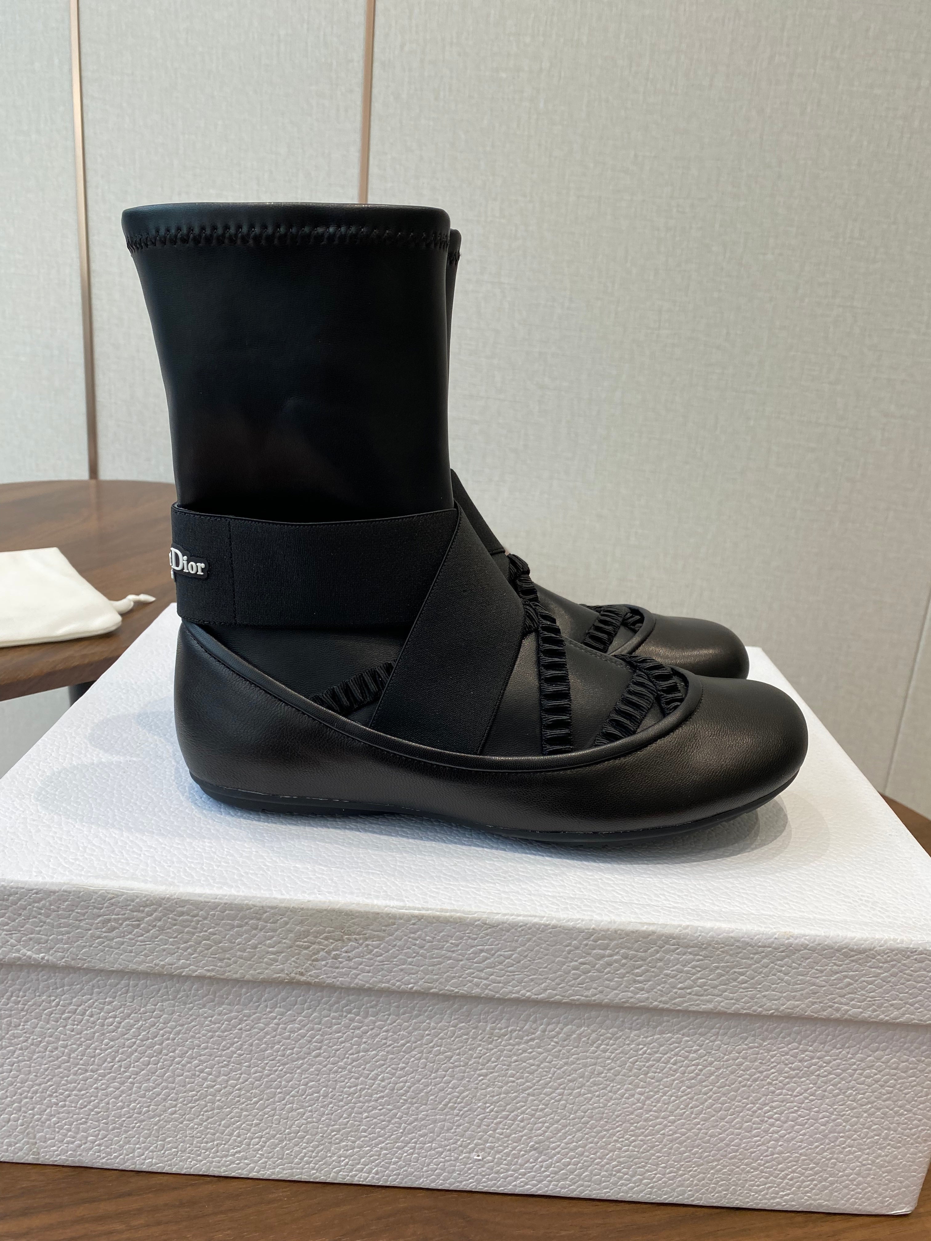 DIOR 25S STRETCH BALLET BOOTS IN BLACK FULL CALFSKIN