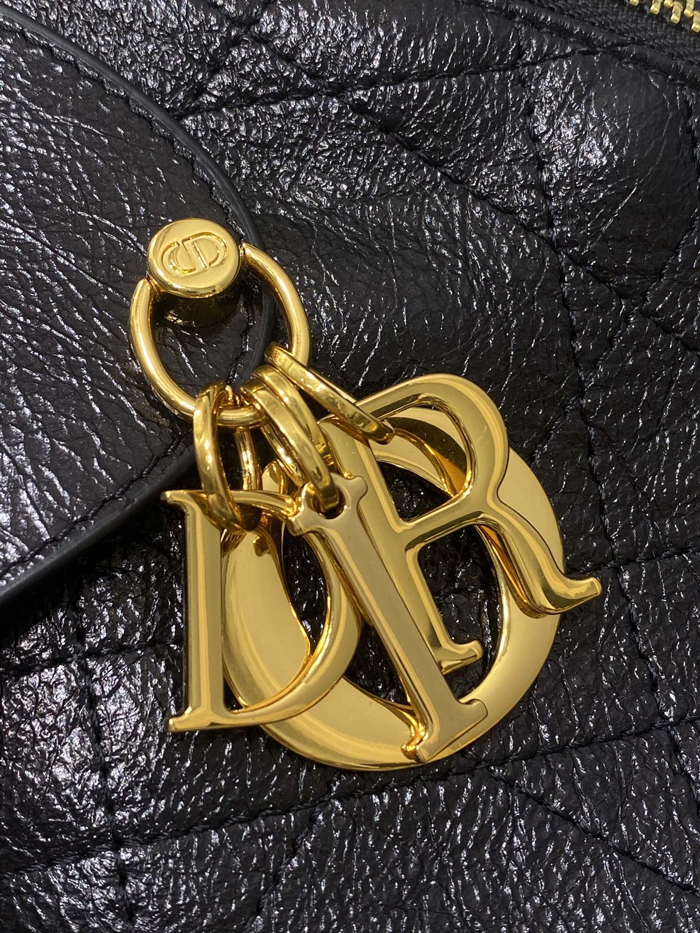 DIOR 25S VOYAGE BAG 34 IN BLACK FLAT MACROCANNAGE GRAINED GLOSSY CALFSKIN