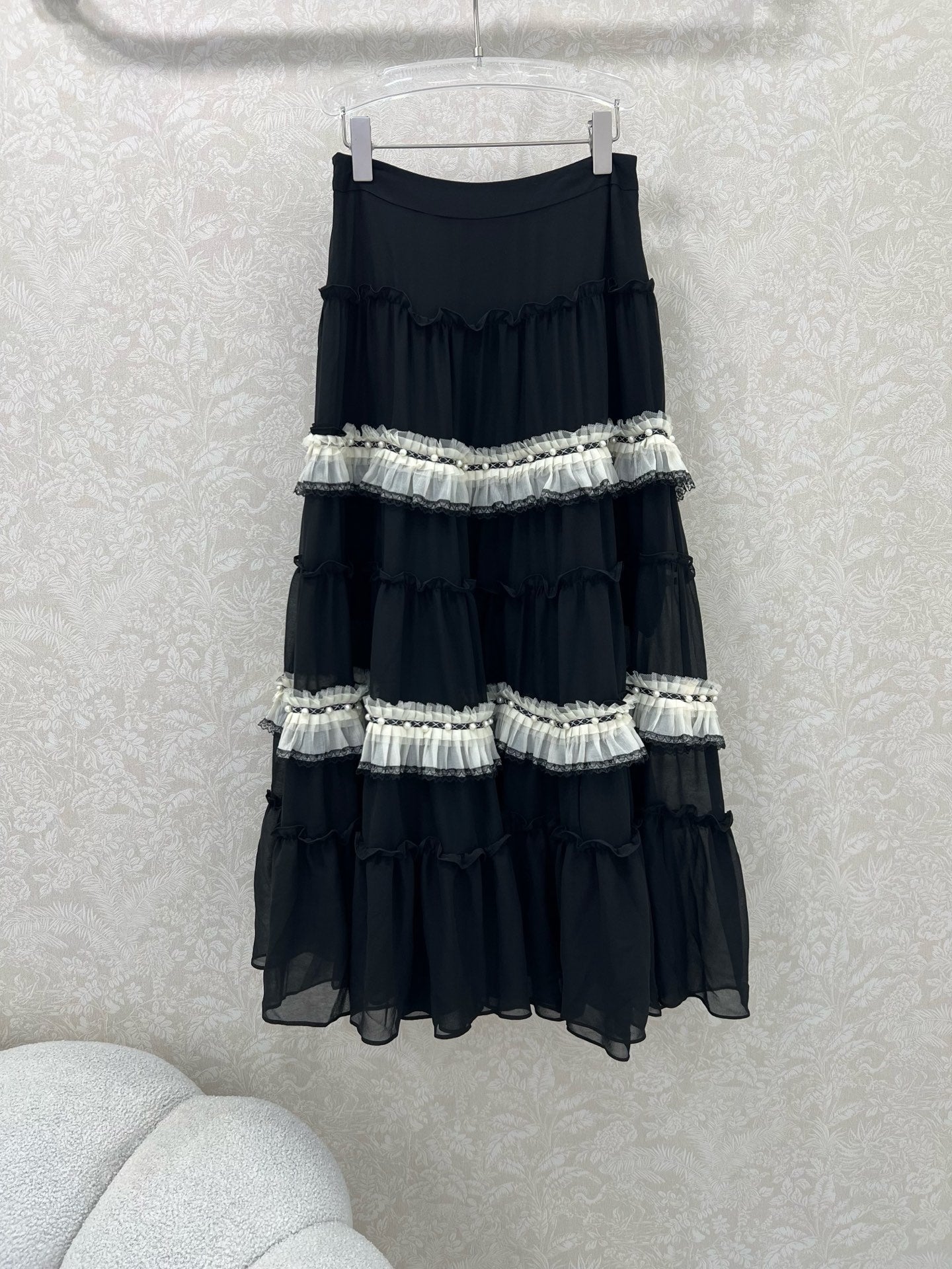 DIOR BLACK RUFFLED SKIRT WITH PEARL EMBELLISHMENTS