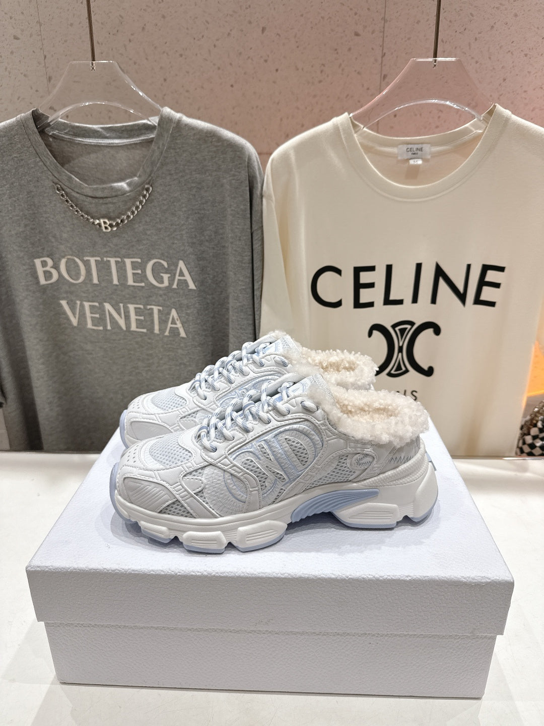 DIOR CHRONO SNEAKER 25S IN WHITE MIX BLUE LAMBSKIN AND MESH FABRIC STYLE 9