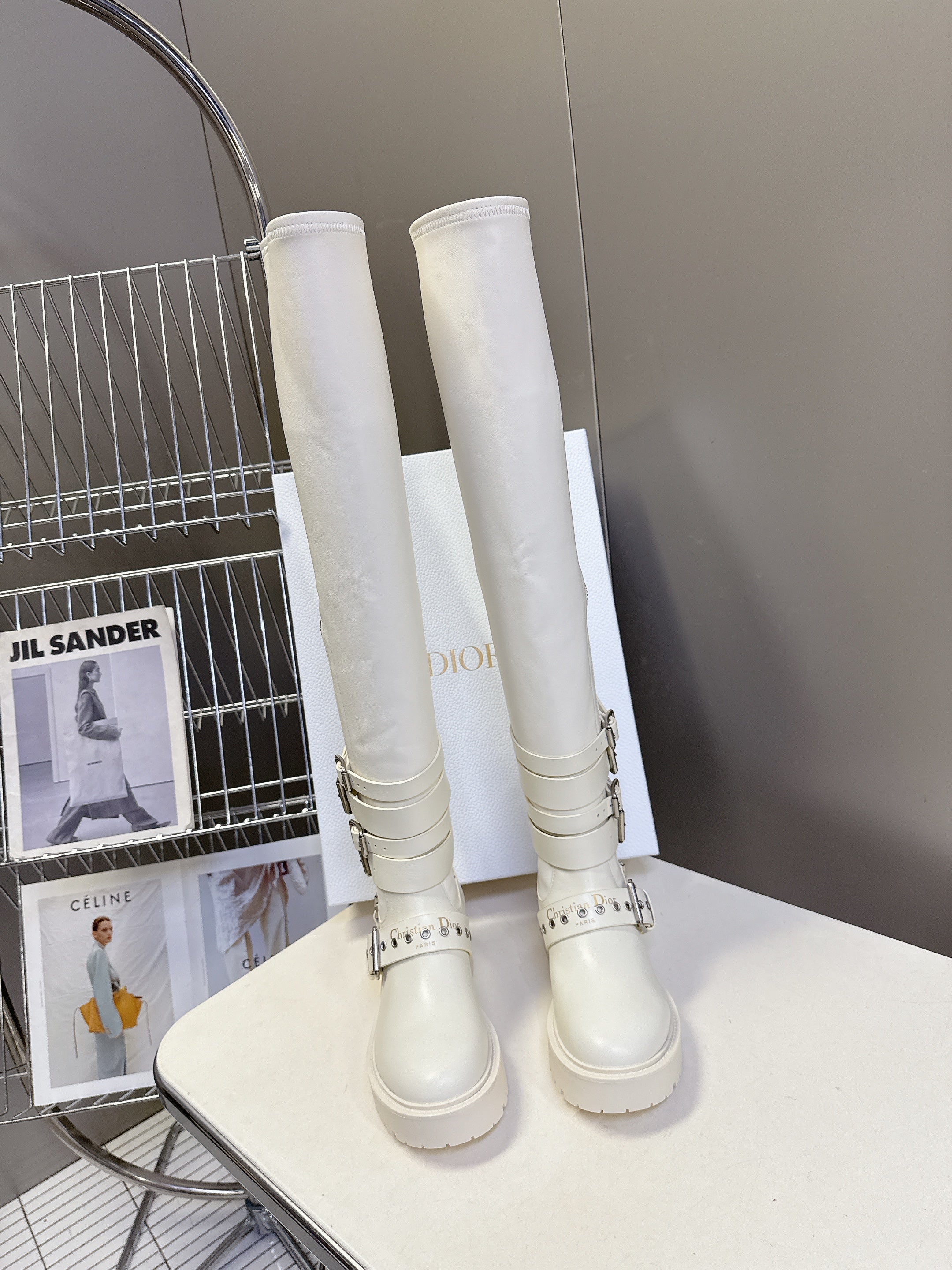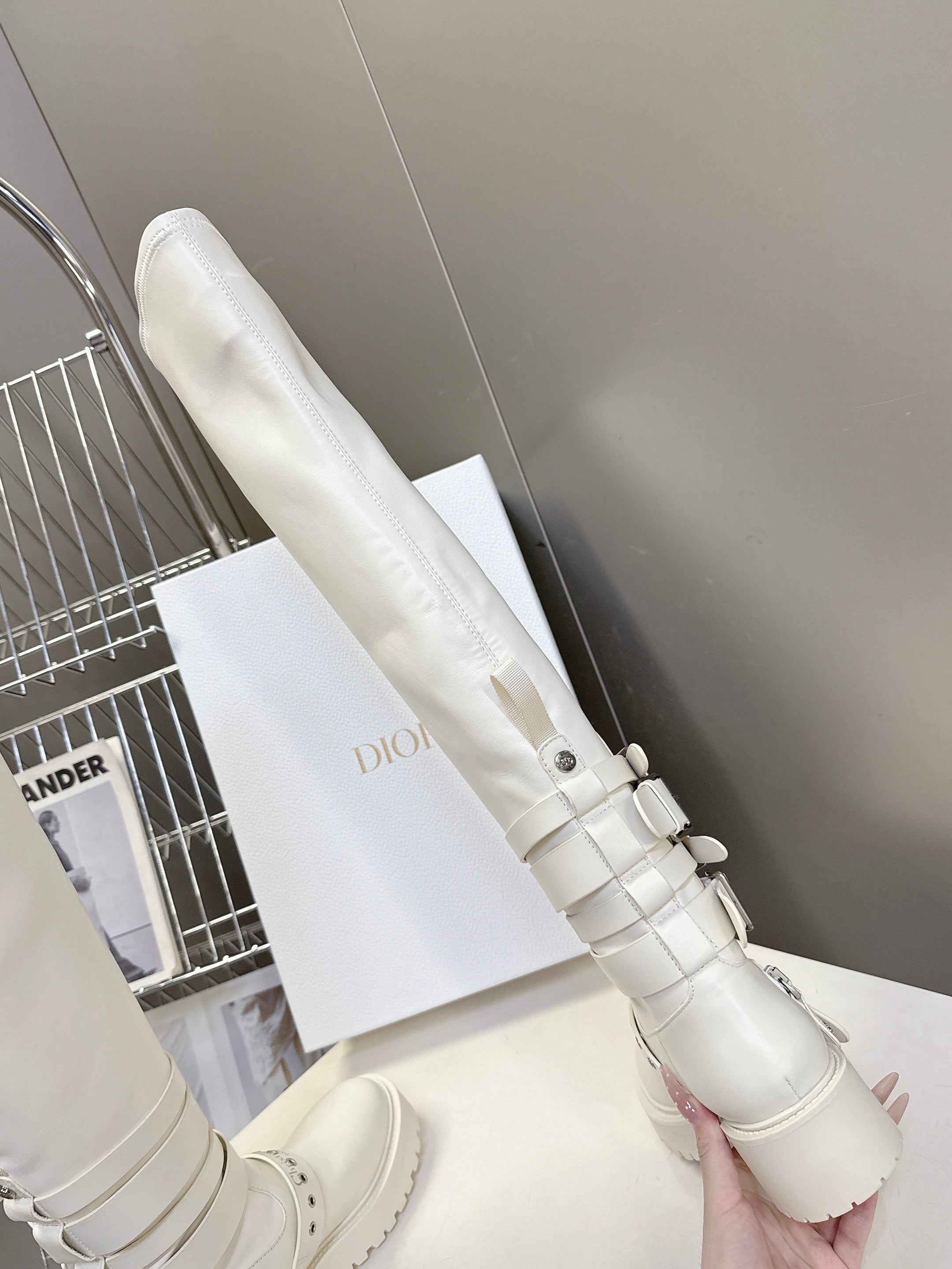 DIOR D-FIGHT BOOT 25S IN WHITE CALFSKIN WITH SILVER HARDWARE