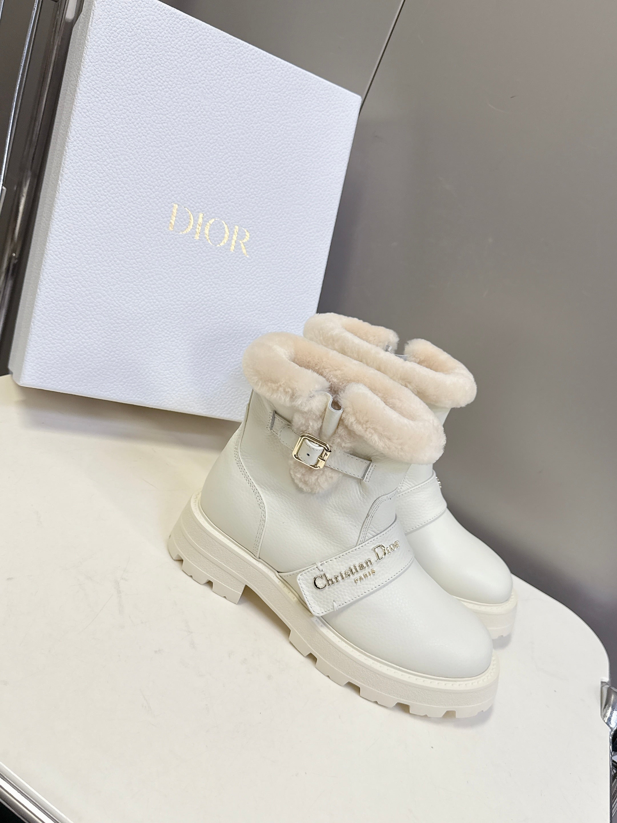 DIORALPS ANKLE BOOTS 25S IN WHITE LAMBSKIN AND BEIGE WOOL WITH GOLD HARDWARE