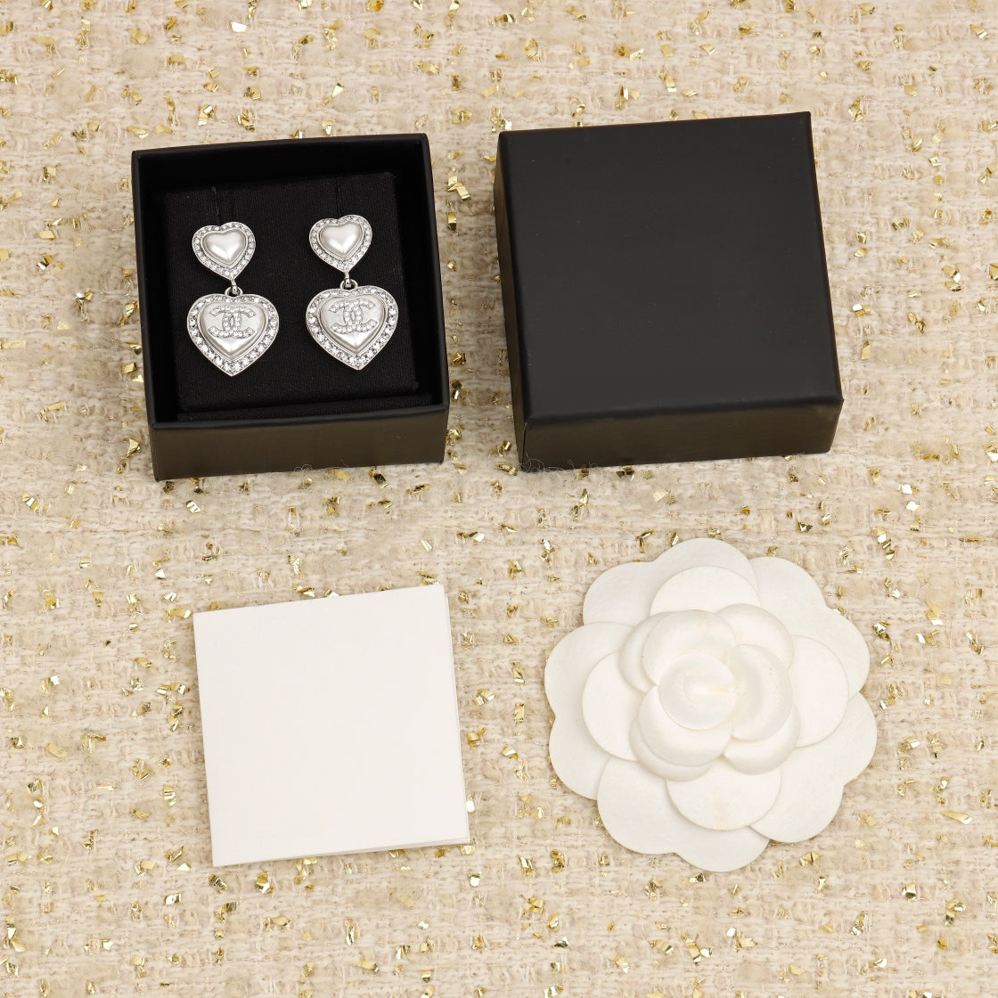 DOUBLE HEART CC DIAMONDS SILVER EARRINGS