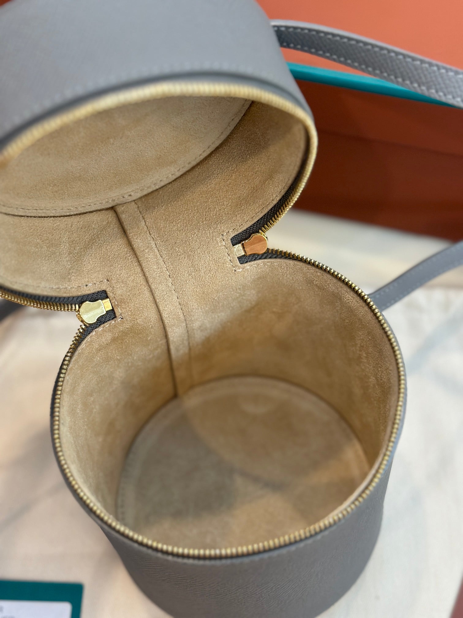 EXTRA CASE MEDIUM 16 BAG IN DOVE GRAY SMOOTH CALFSKIN WITH GOLD HARDWARE