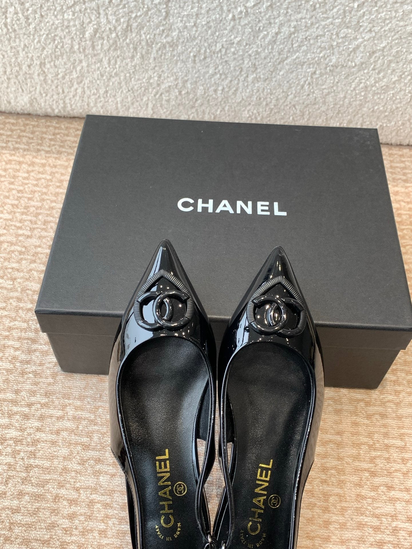 FLAT SLINGBACKS IN BLACK PATENT CALFSKIN